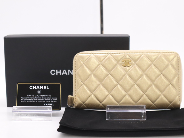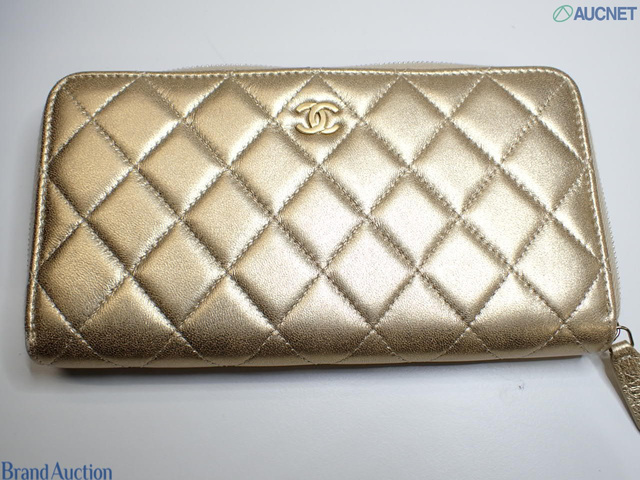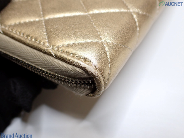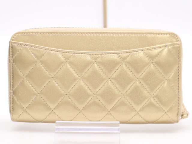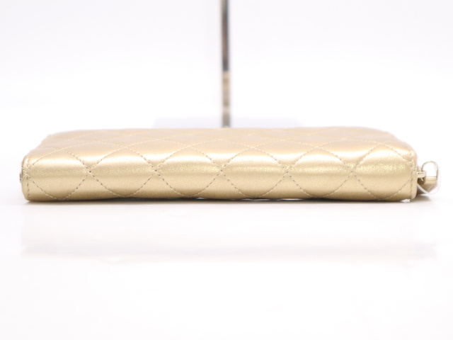 A50097 ラムスキン マトラッセ ラウンドジップウォレット ゴールド