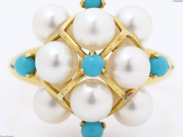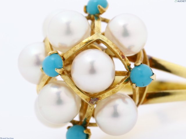 K18 アコヤパール 径約4.5-4.7mm リング ターコイズ 4.1g