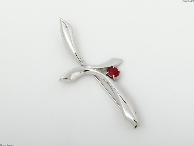 ルビー K18WG/K14WG 0.60 4.32gブローチ