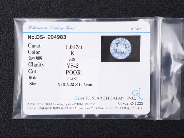 1.017ct K VS2 POOR FAINT