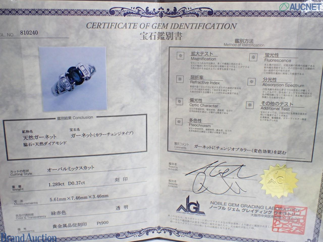 カラーチェンジガーネット 1.289 Pt900 ダイヤ D0.37 7.2g