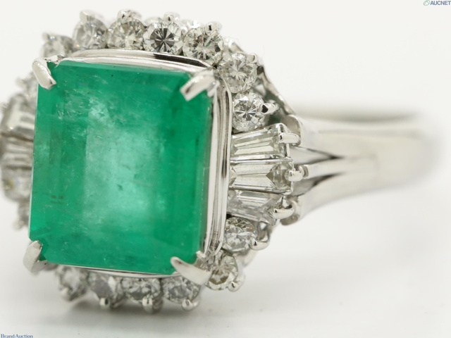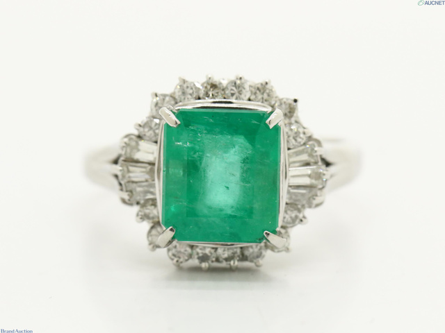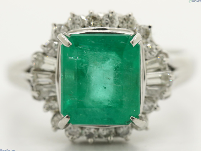 エメラルド E3.02 D0.63 7.0gダイヤリング Pt900 #13.5