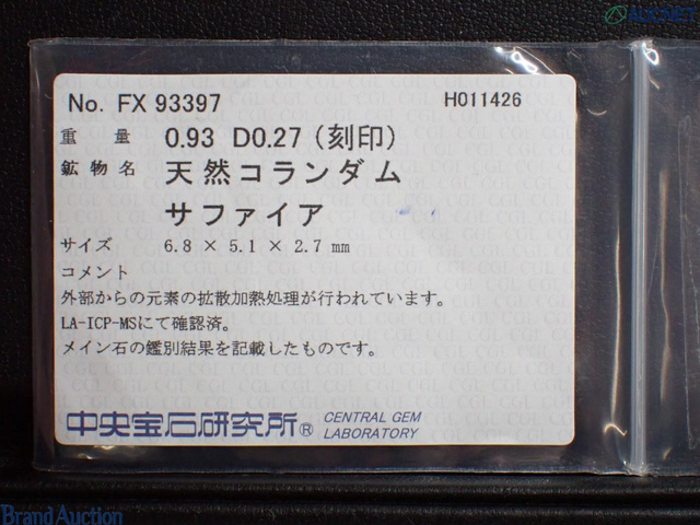 サファイヤ PT950 S0.93 D0,27 2.9g #約12