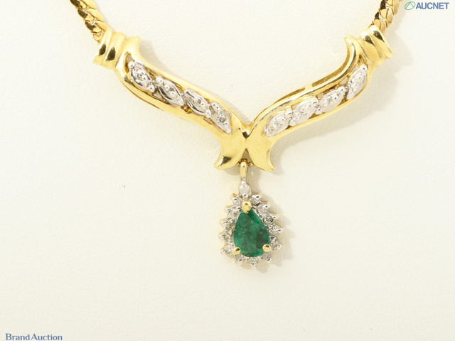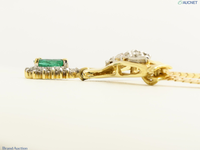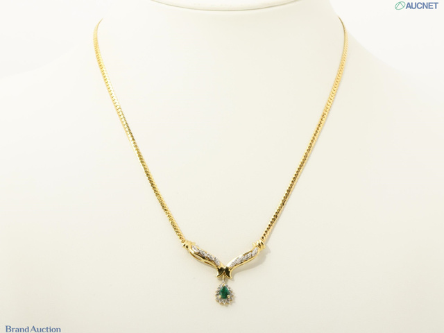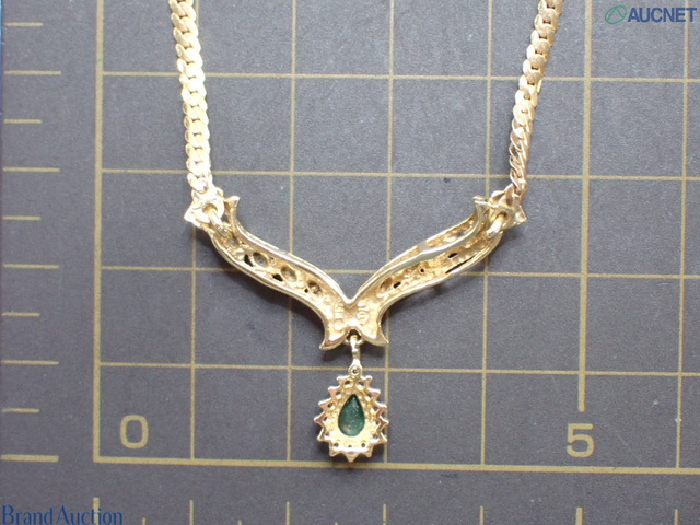 K14ネックレス エメラルド ダイヤ 石目刻印なし 5.9g 首周り約43cm