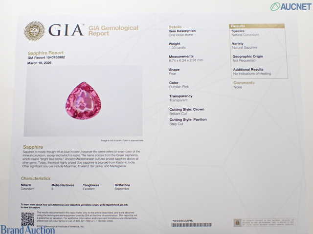 ピンクS1.03ct GIA Noheat D0.7ct pt900 5.4g