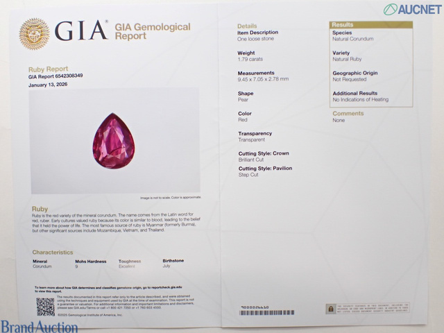 ルビー1.79ct Noheat GIA D0.56ct pt900 4.6g