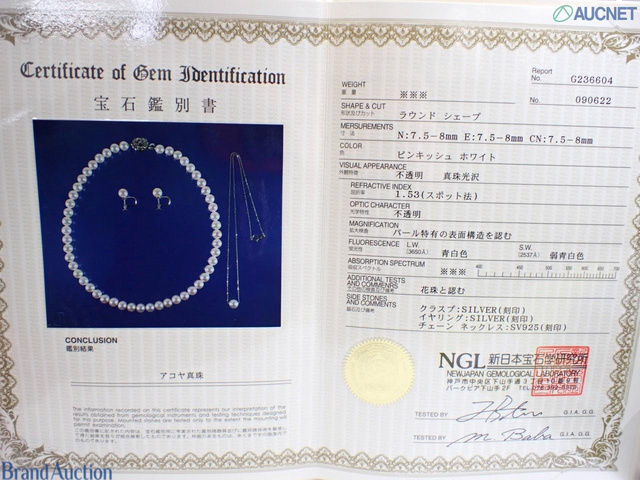 花珠真珠 7.5~8.0 アコヤ真珠 パール 鑑別書 42cm SV