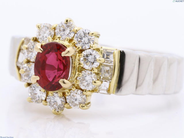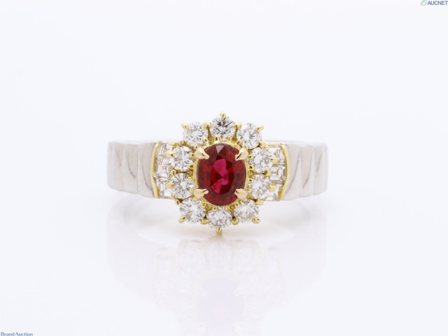 ルビー0.63ct D0.61ct Pt900/K18 7.3g #10