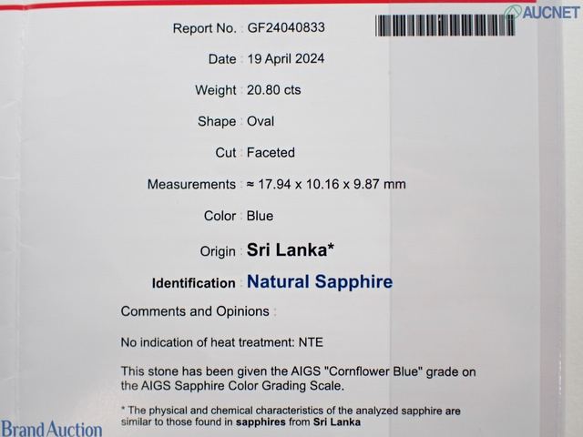 PT900 サファイヤ20.80 コーンフラワー 非加熱 スリランカ