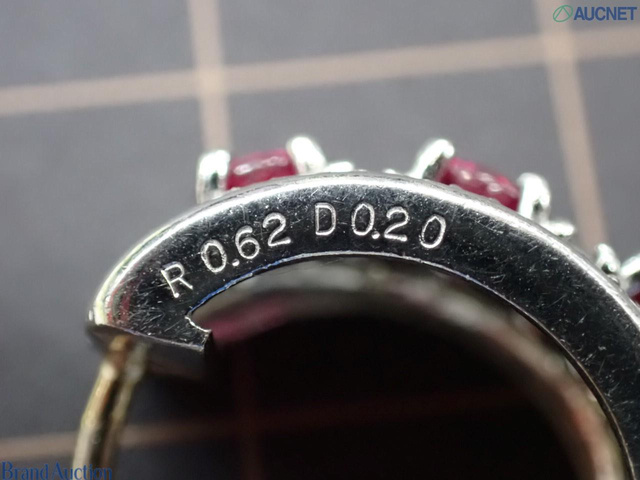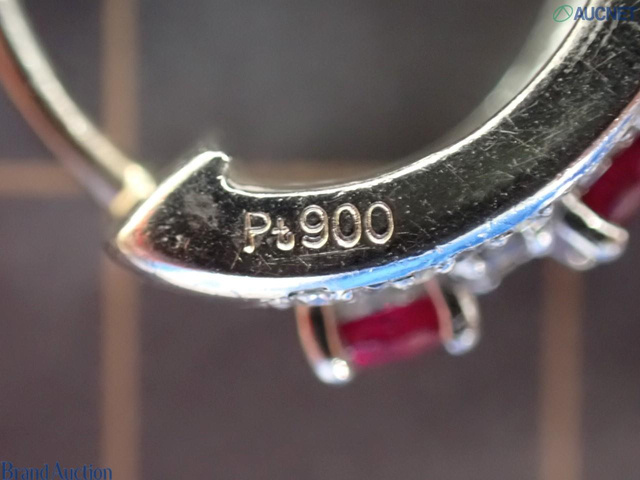 Pt900 ルビー 0.62ctx2 ダイヤ 0.20ctx2 12.1g