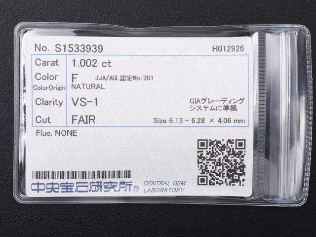 1.002ct F VS1 FAIR NONE
