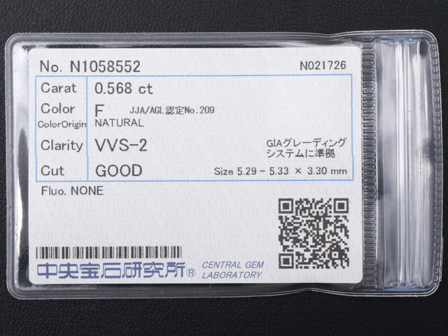 0.568ct F VVS2 GOOD NONE