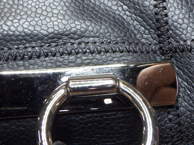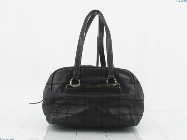 キャビアスキン ロゴ金具 ハンドバッグ