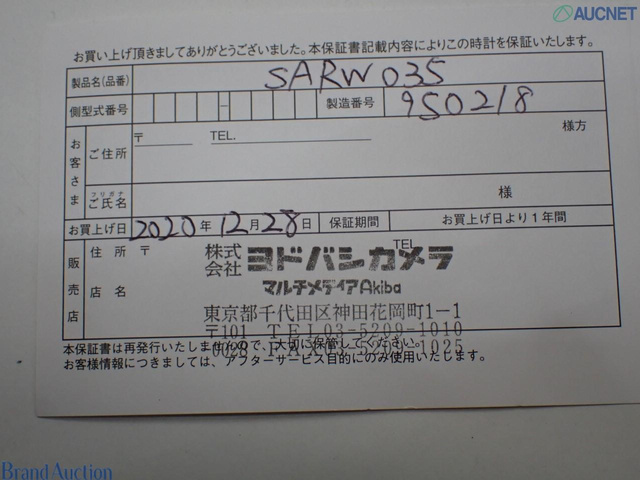 プレザージュ SARW035/6R27ー00L0 裏スケ ホワイト文字盤 革