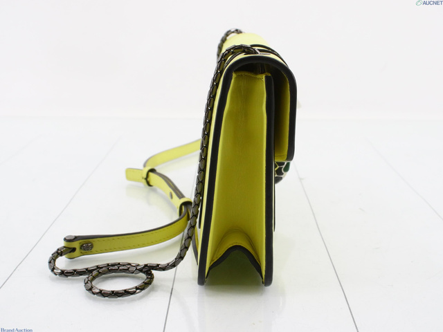 セルペンティ・フォーエバー レザー チェーンショルダーバッグ イエロー系