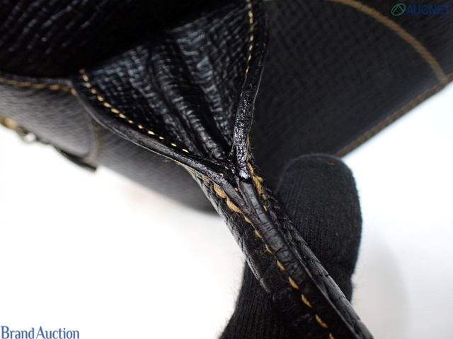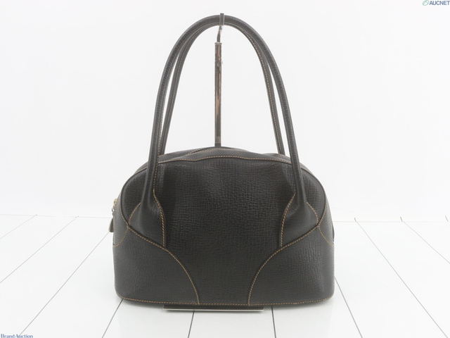 型押しロゴ レザー ブラック ハンドバッグ 126