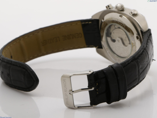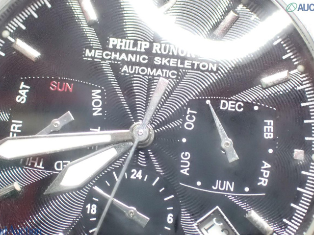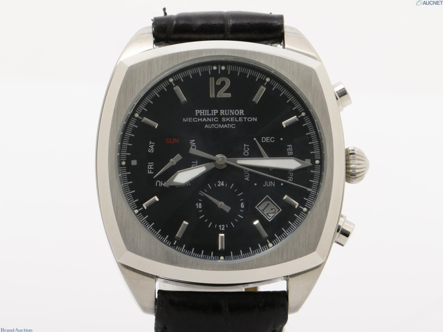 PHILIP RUNOR デイト 裏スケ ブラック文字盤 革 メンズ
