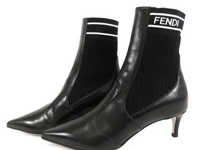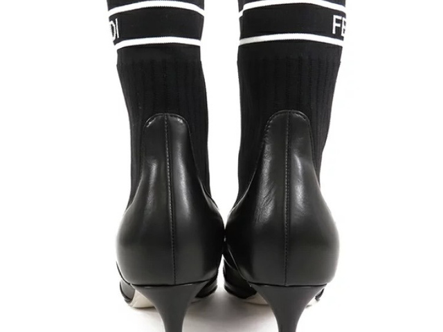 FENDI フェンディ ロココ ソックスブーツ レディース 38 黒