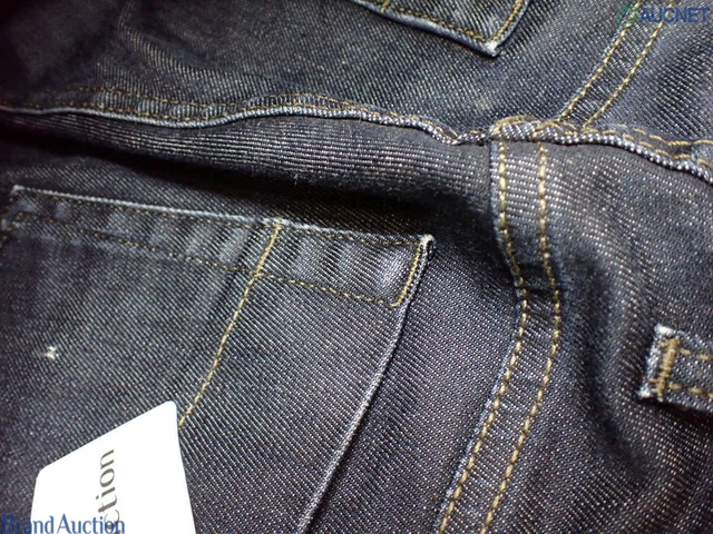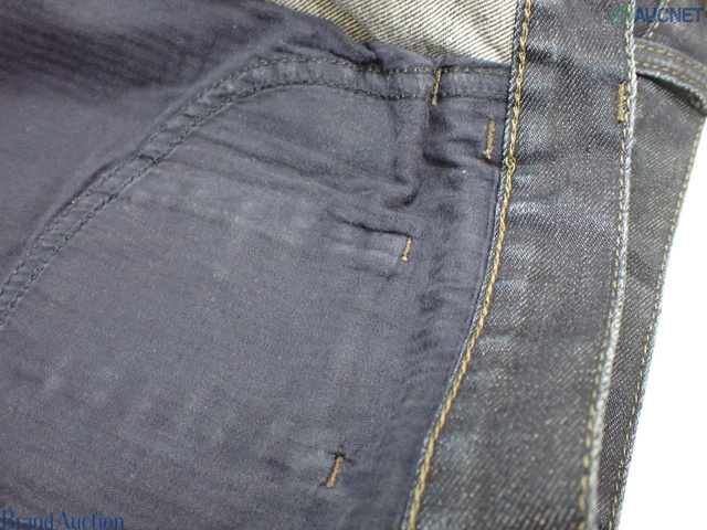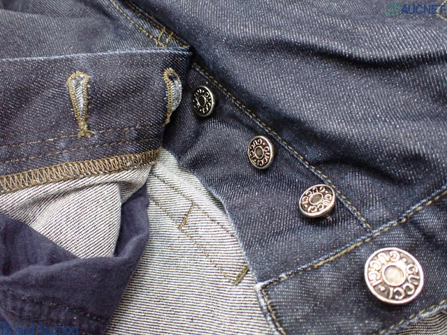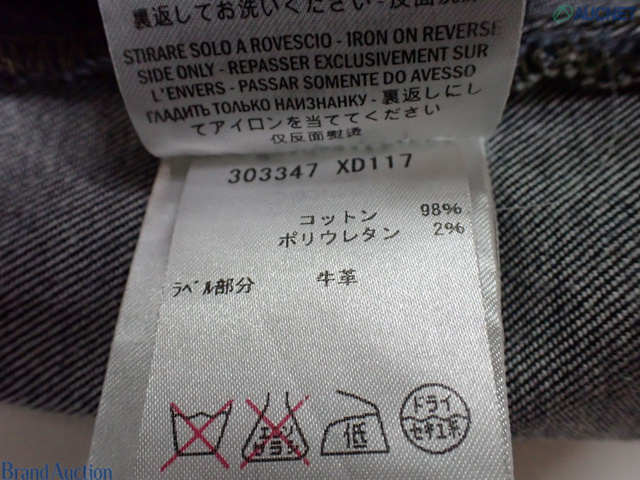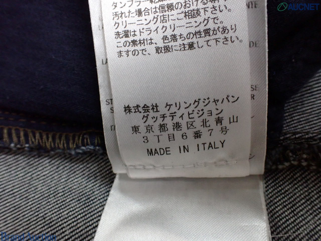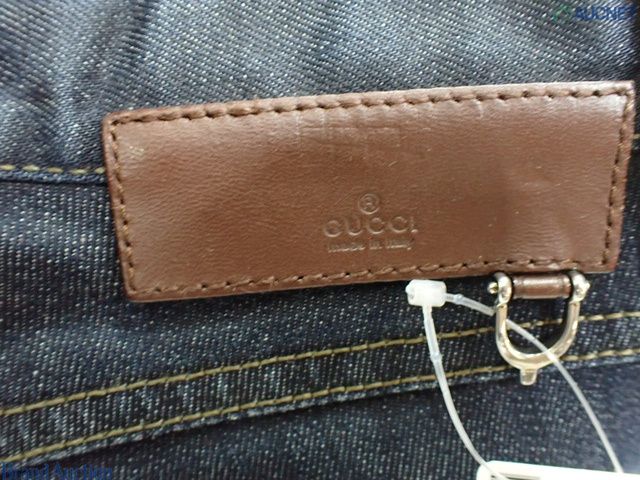GUCCI グッチ 46 デニム ジーンズ ラベル牛革 パンツ 総丈97cm
