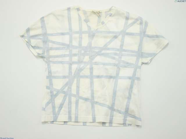コットン リボン柄 Vネック 半袖Tシャツ M