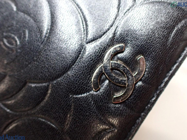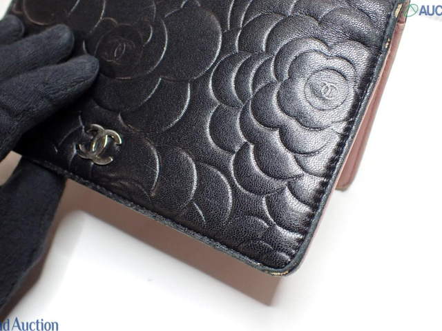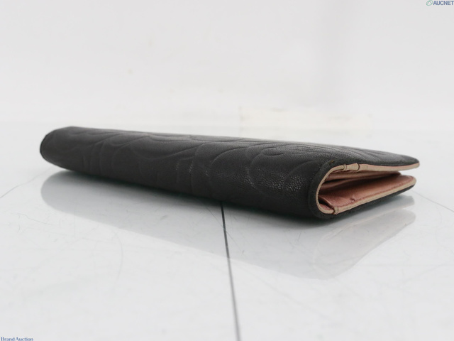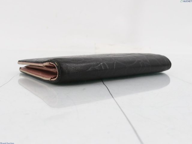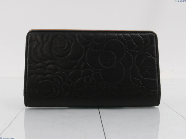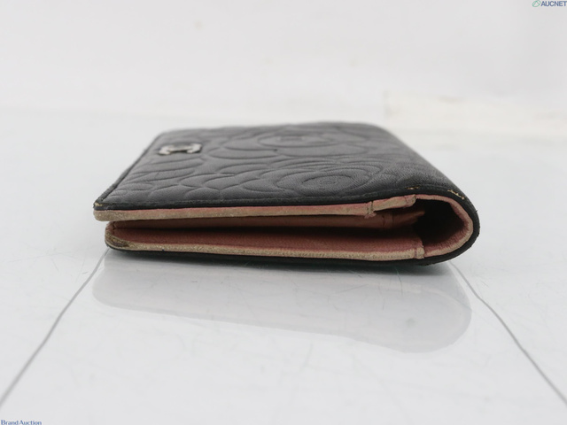 カメリア ラムスキン ココマーク 二つ折り長財布 ブラック