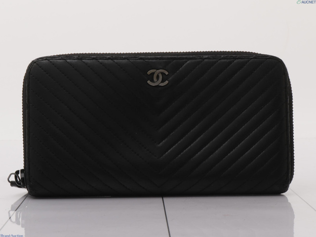 シェブロン Vステッチ ラウンドファスナーウォレット