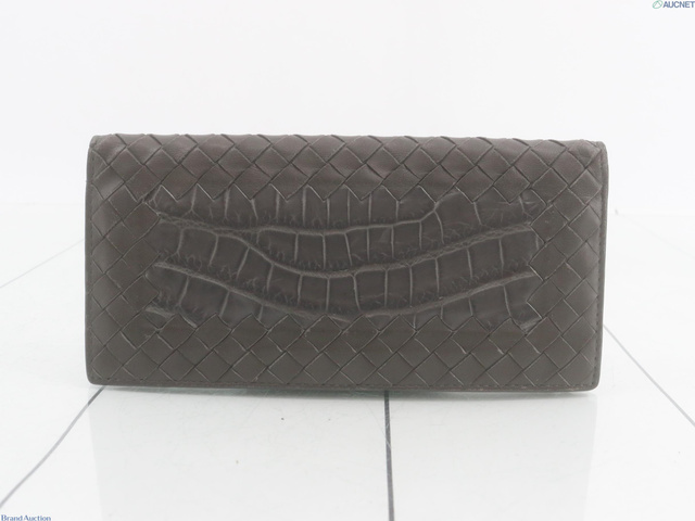 イントレチャート×クロコ ロングウォレット グレー