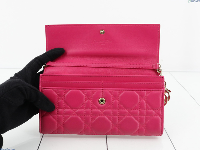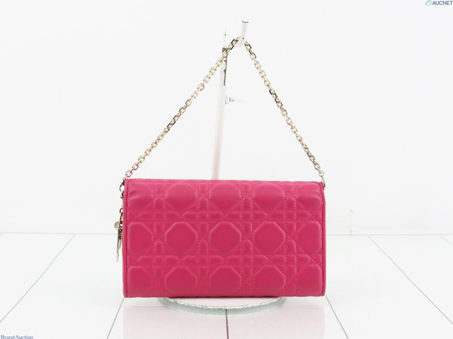 レディディオール チェーンウォレット レザー ピンク