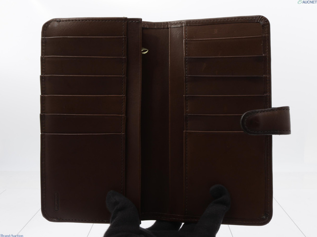 レザー 二つ折り長財布 ダークブラウン系