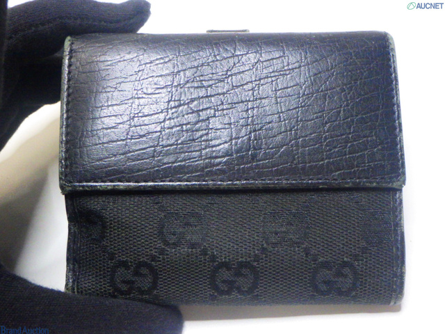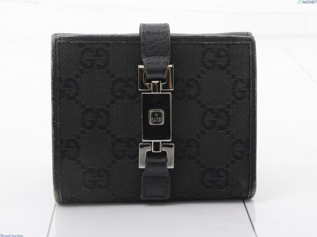 グッチ GUCCI ジャッキー キャンバス三つ折り財布 ブラック系 2125