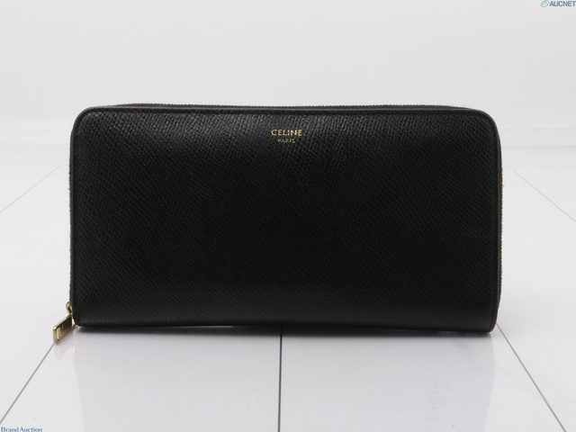セリーヌ ラウンドファスナー長財布 レザー オールブラック