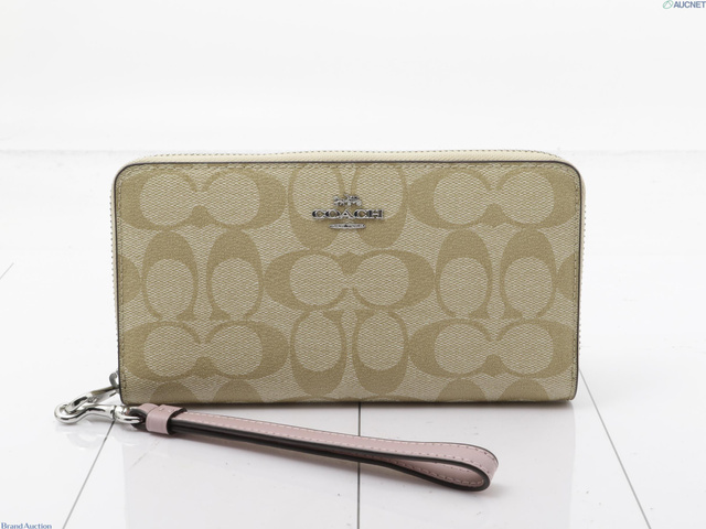 シグネチャー PVC ラウンドファスナー長財布 ベージュ系