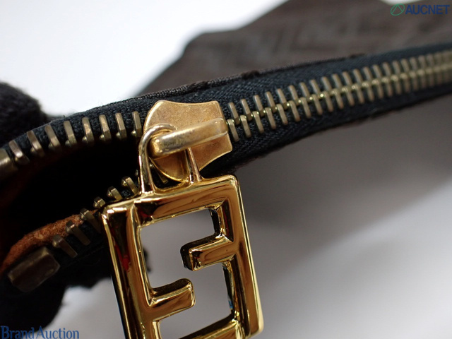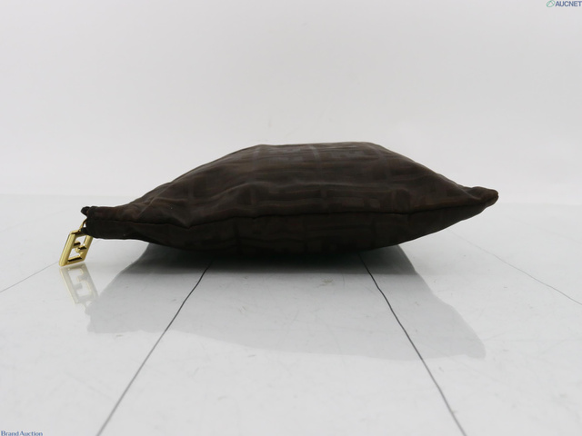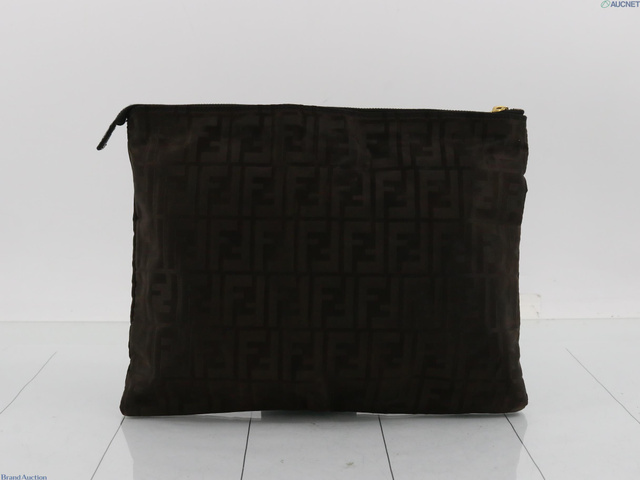 ズッカ柄 FFロゴ クラッチバッグ スクエアポーチ ゴールド金具 ダークブラウン