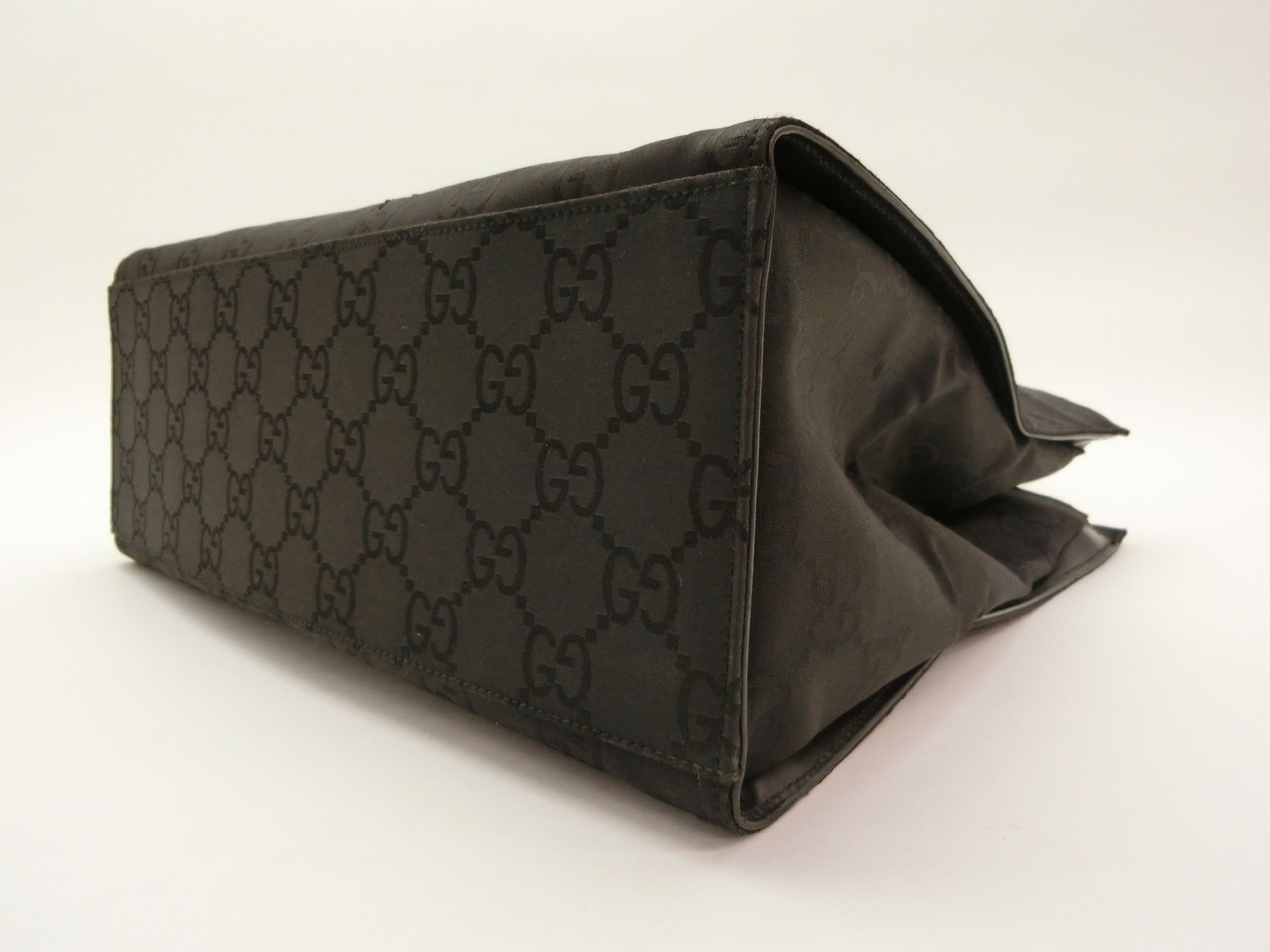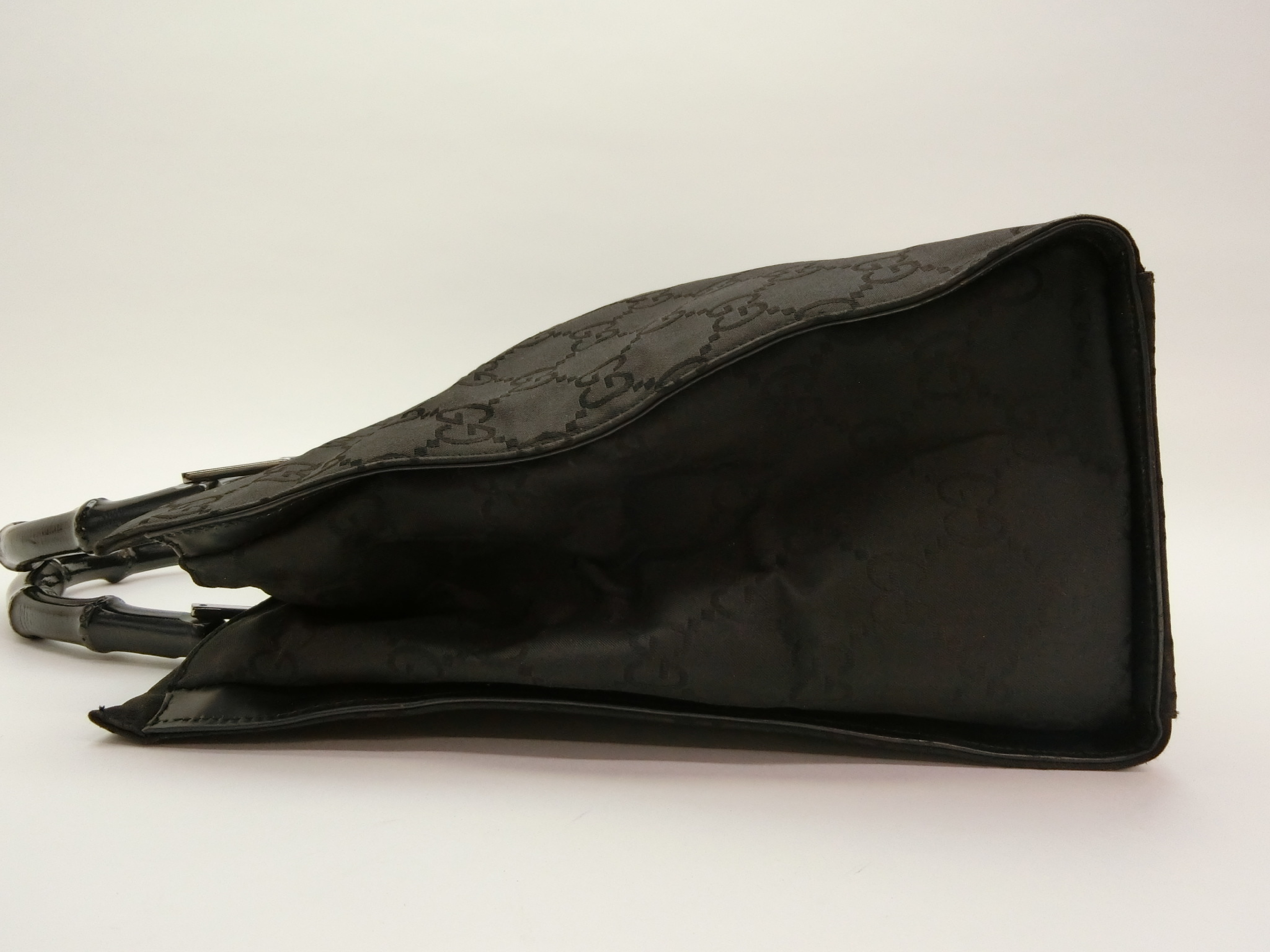 (10321_0193)GUCCI GGナイロン キャンバス バンブー ハンドバッグ