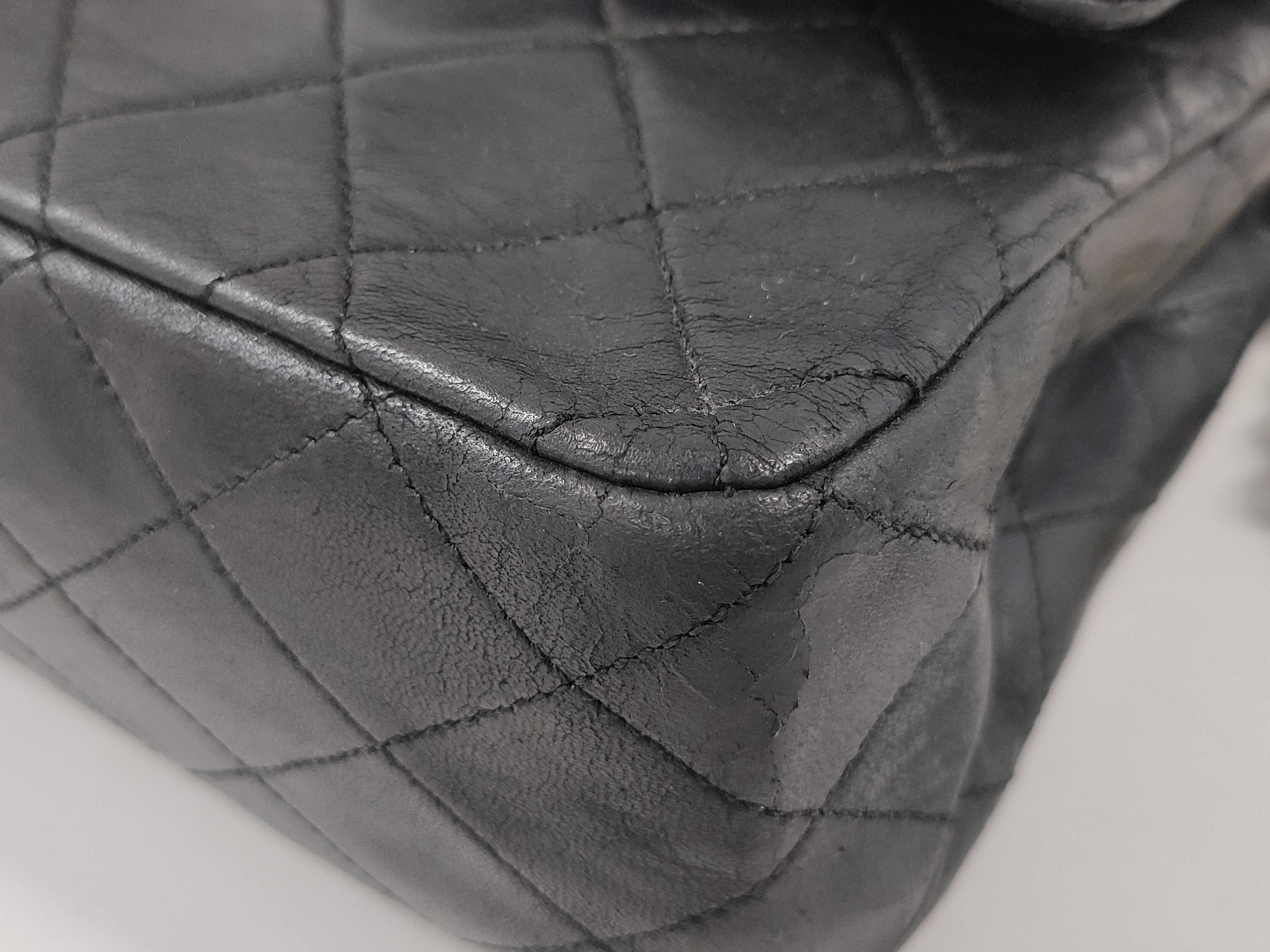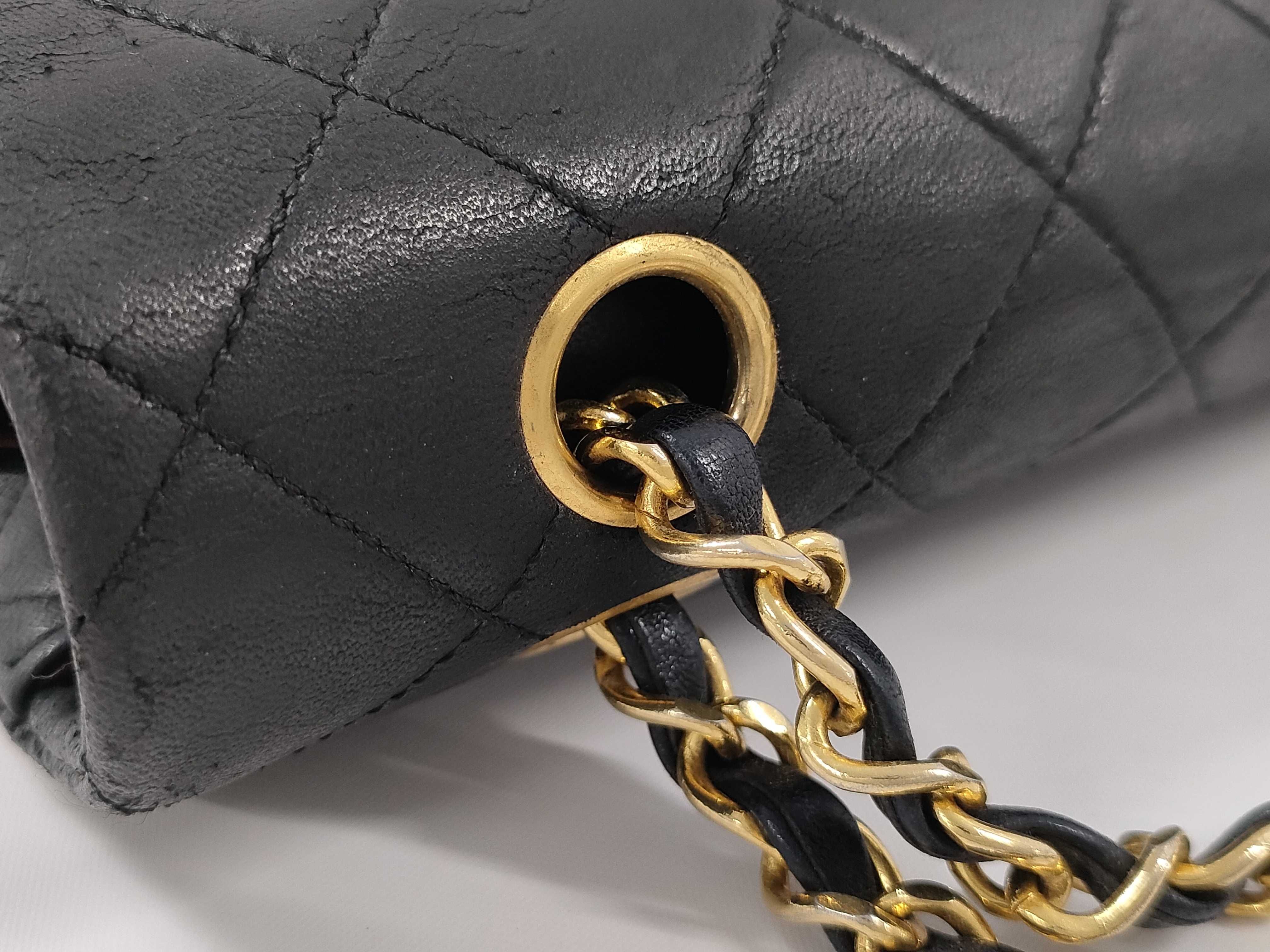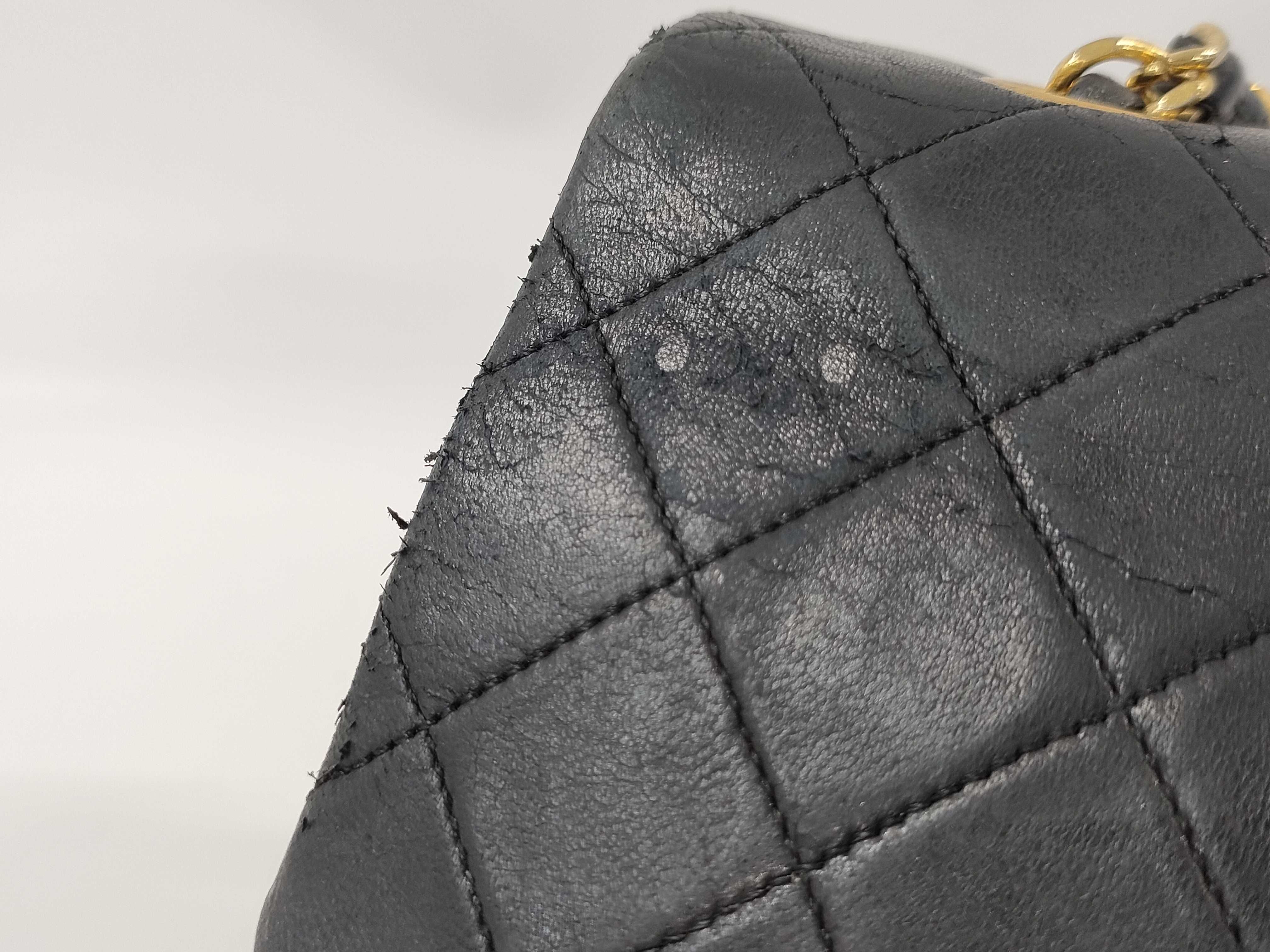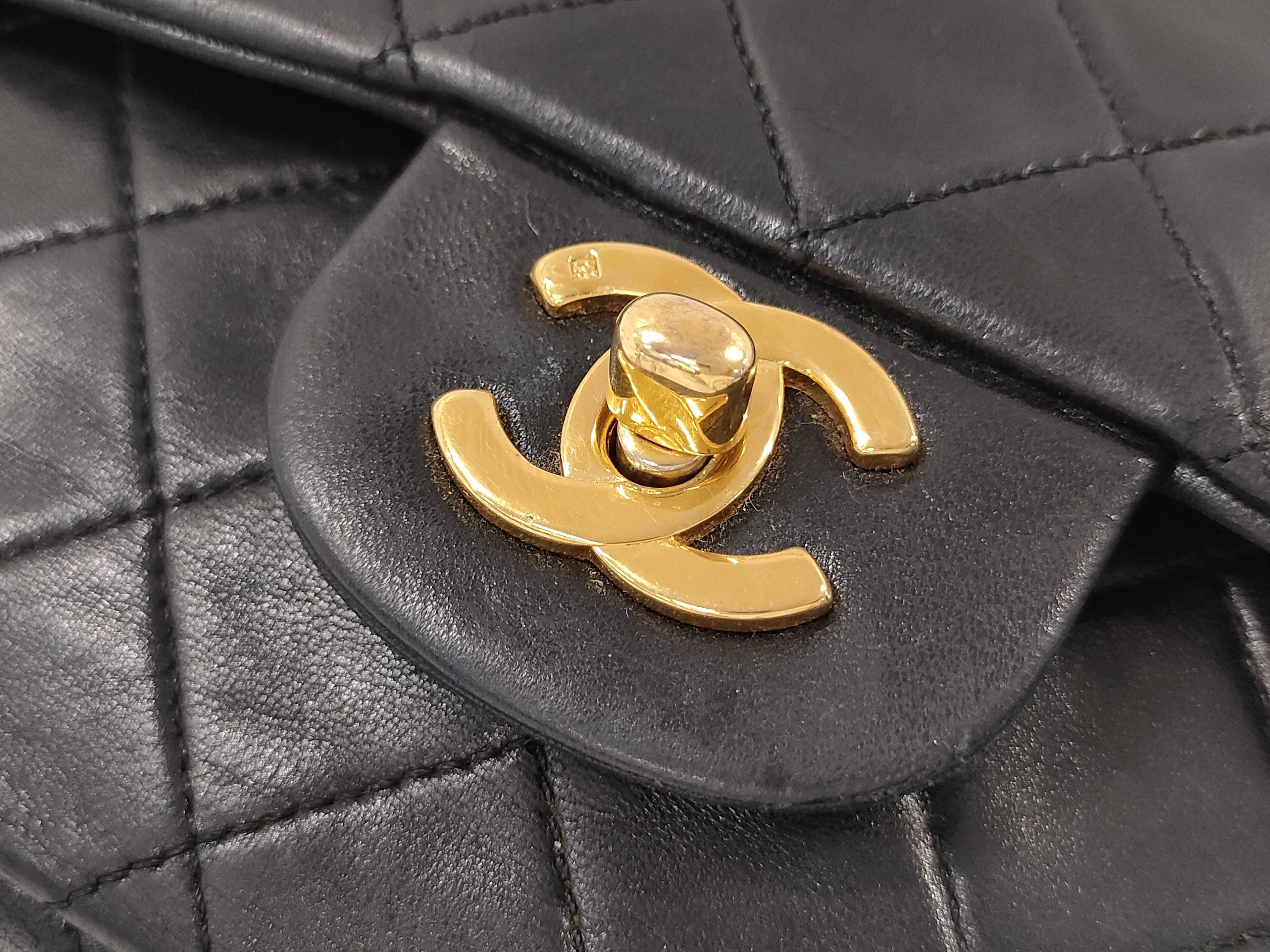 (C_0029)CHANEL シャネル ラムスキン Wフラップ ブラック ショルダーバッグ