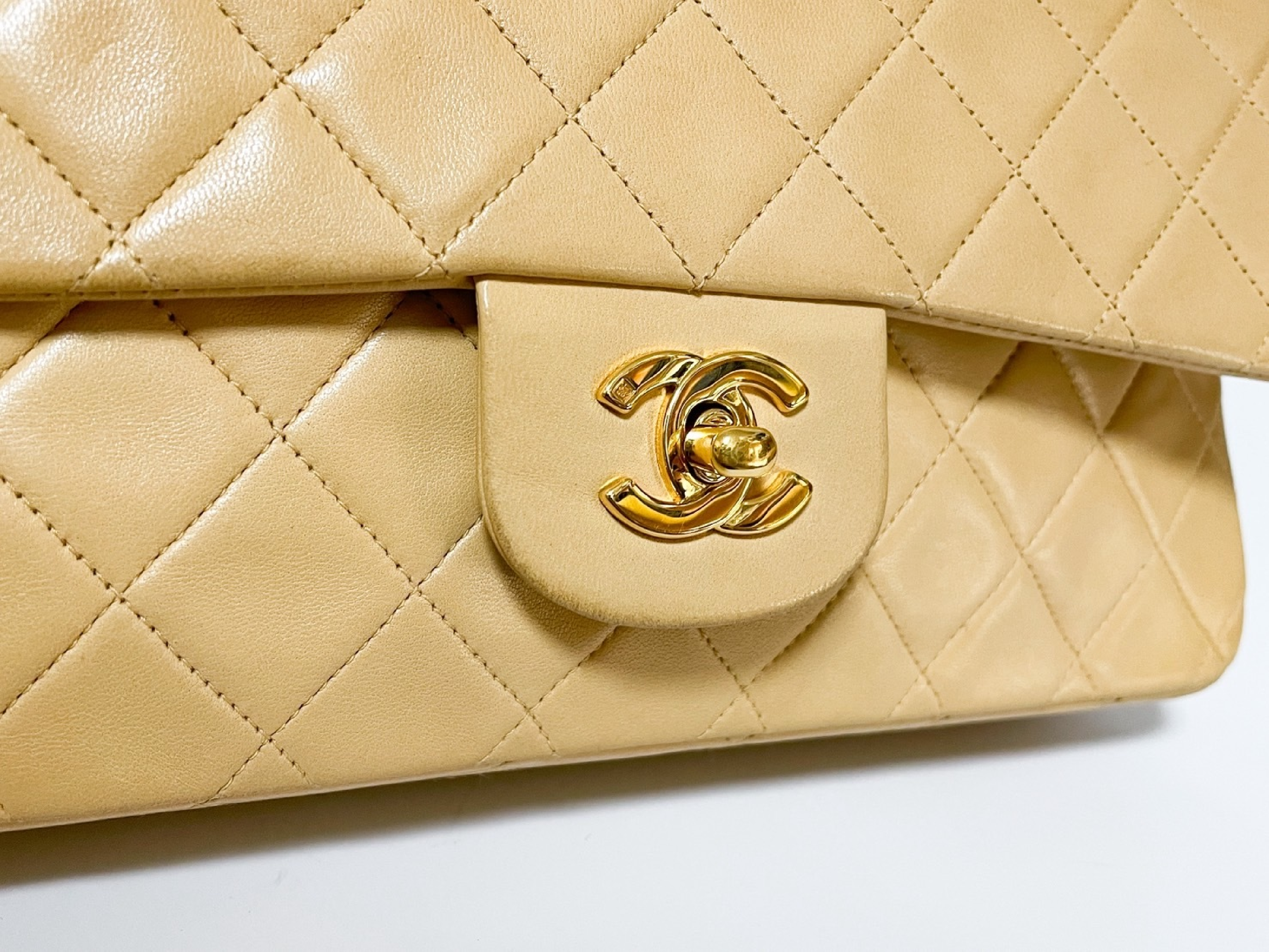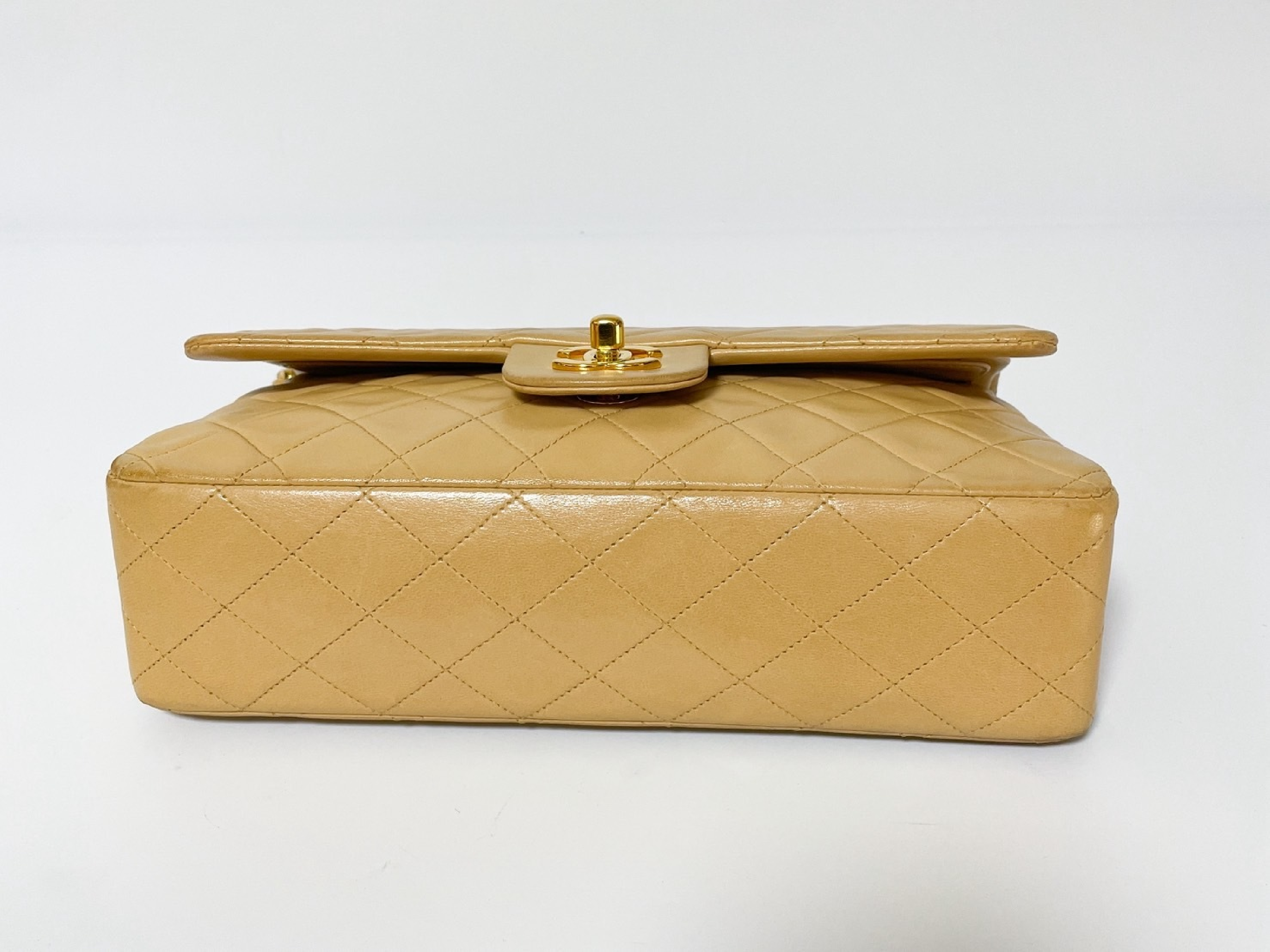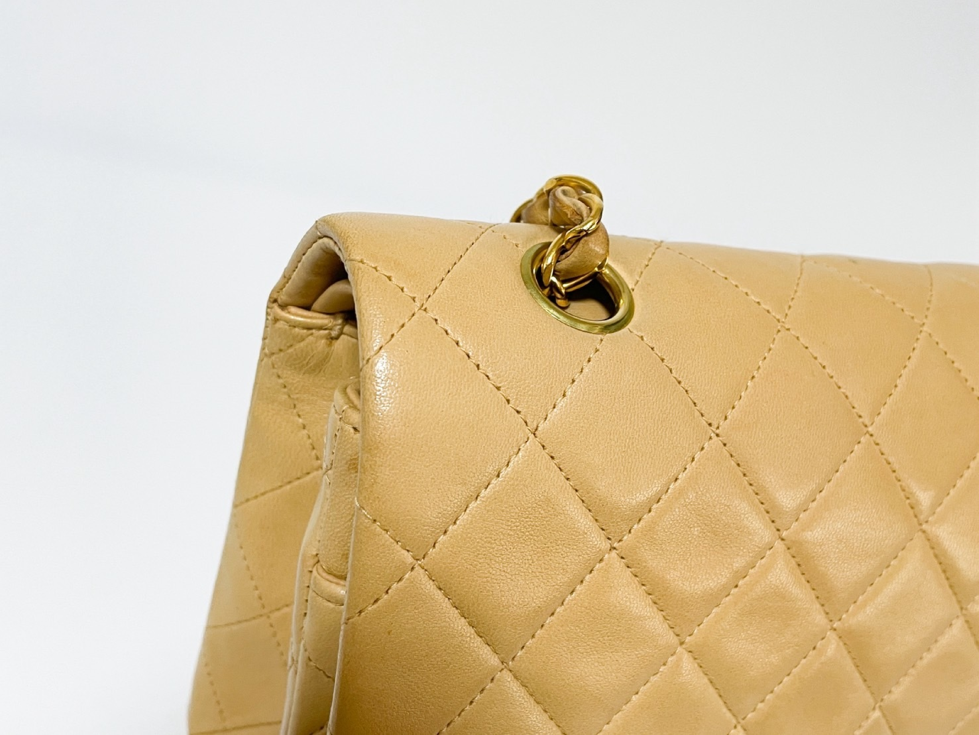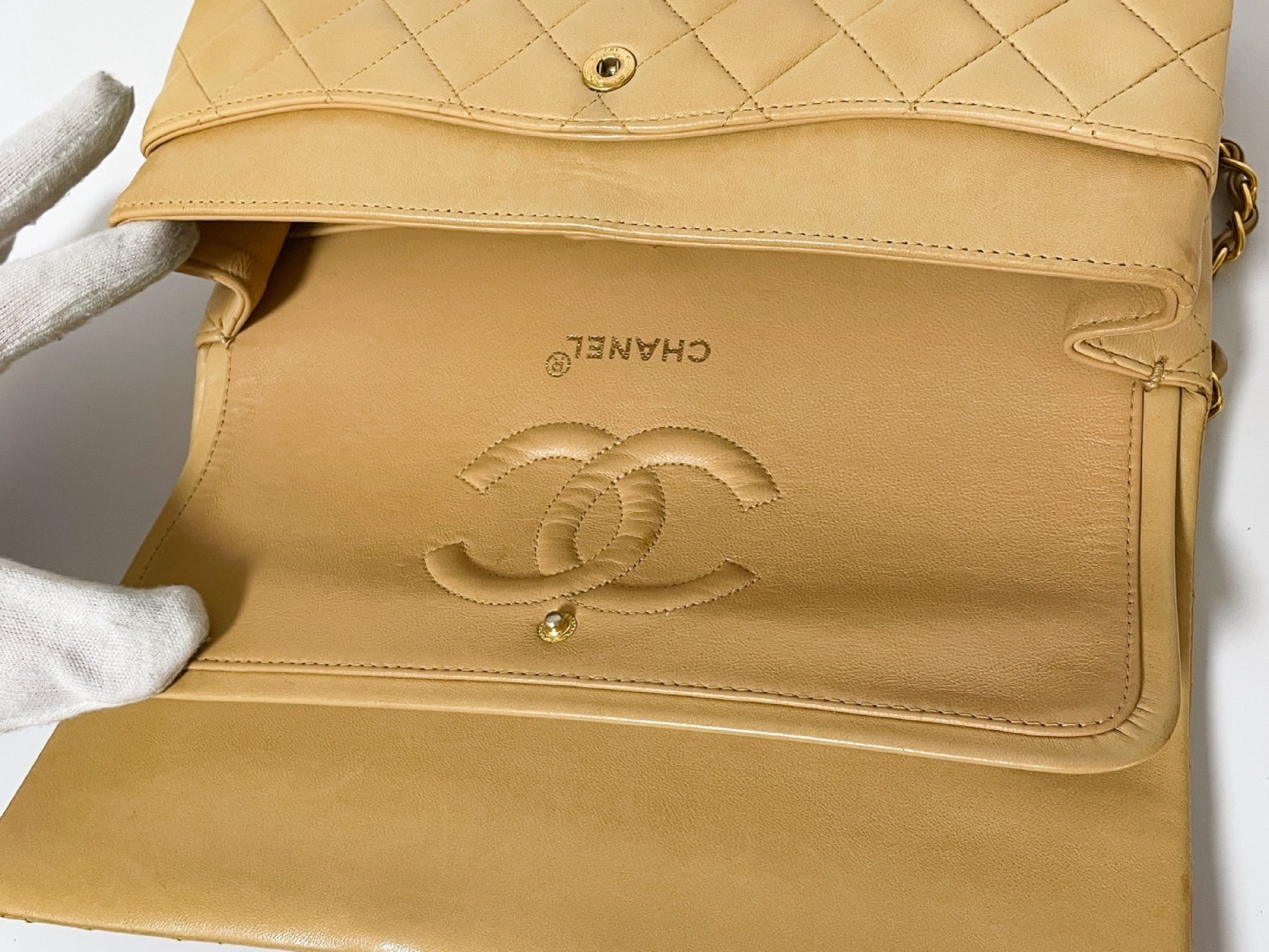 (C_0035)CHANEL Wフラップ マトラッセ ベージュ ラムスキン シールあり ショルダーバッグ