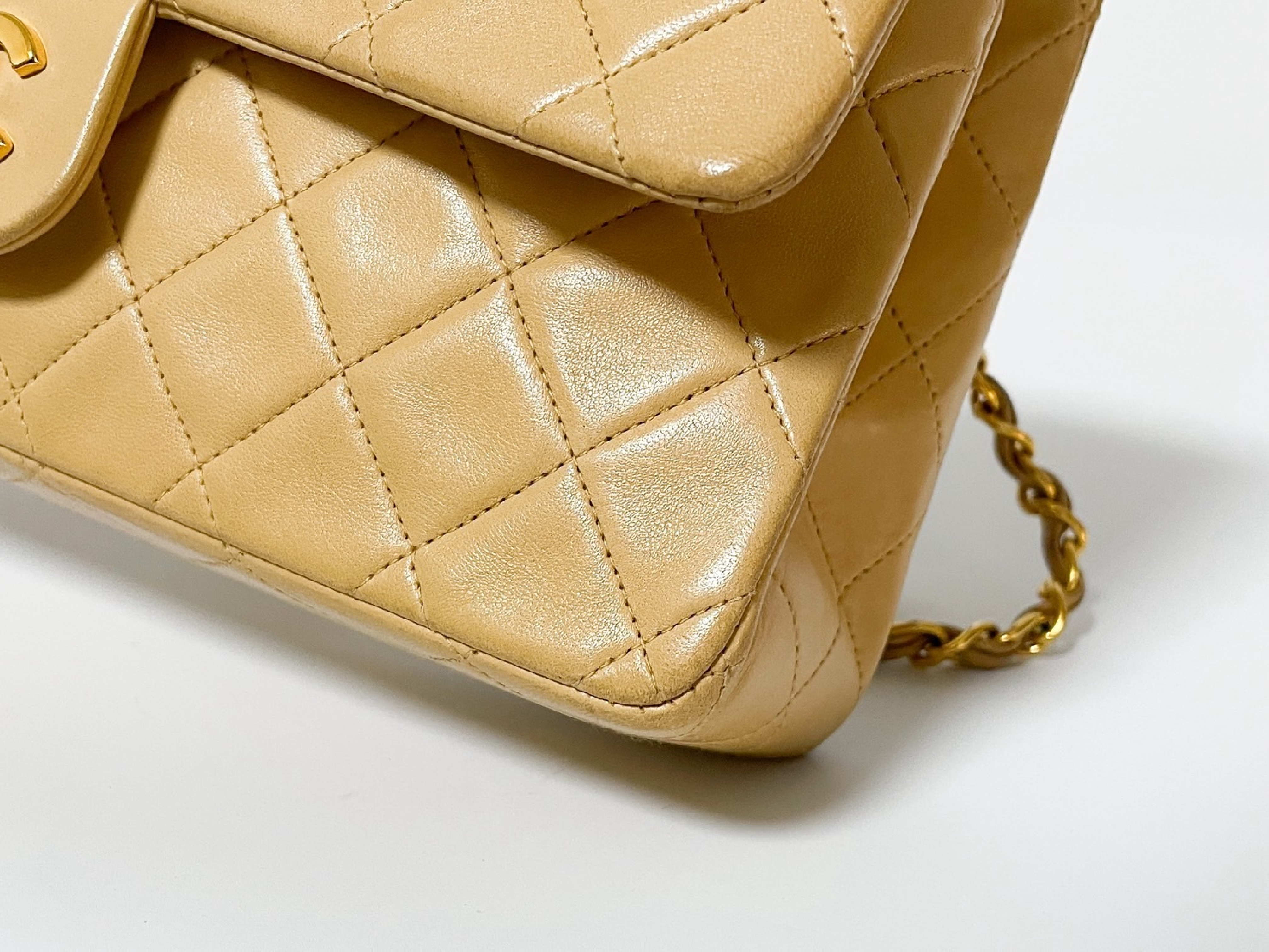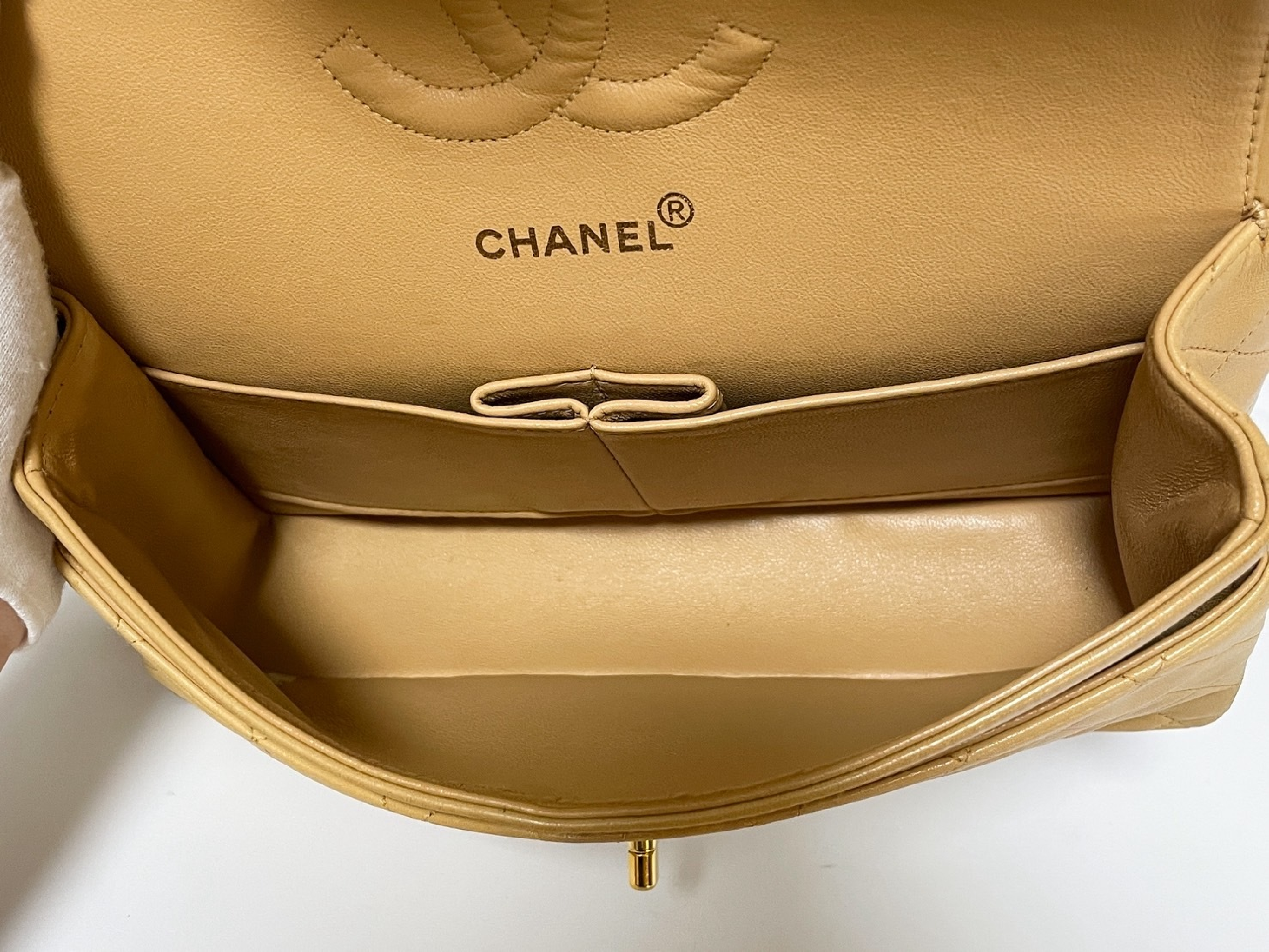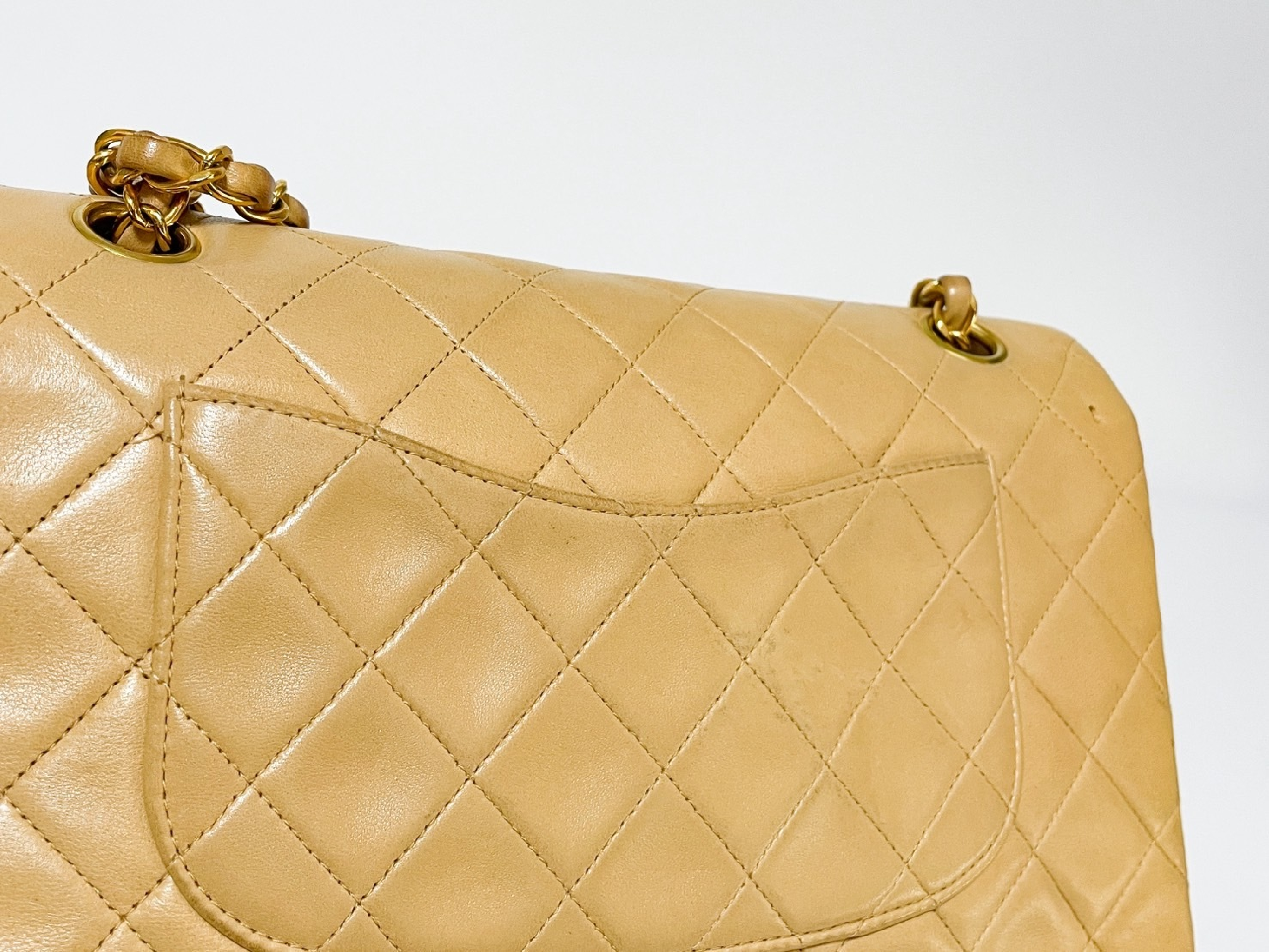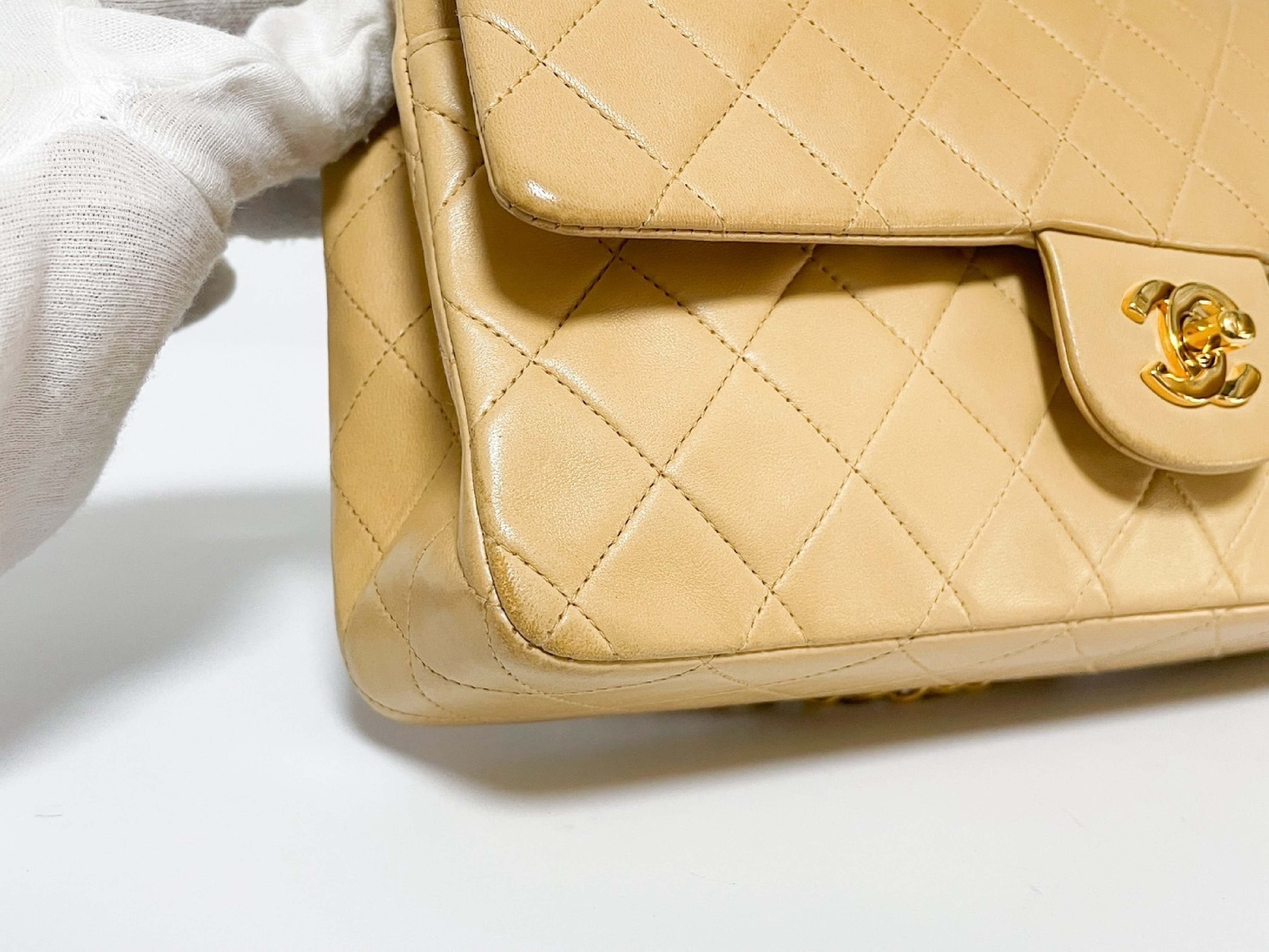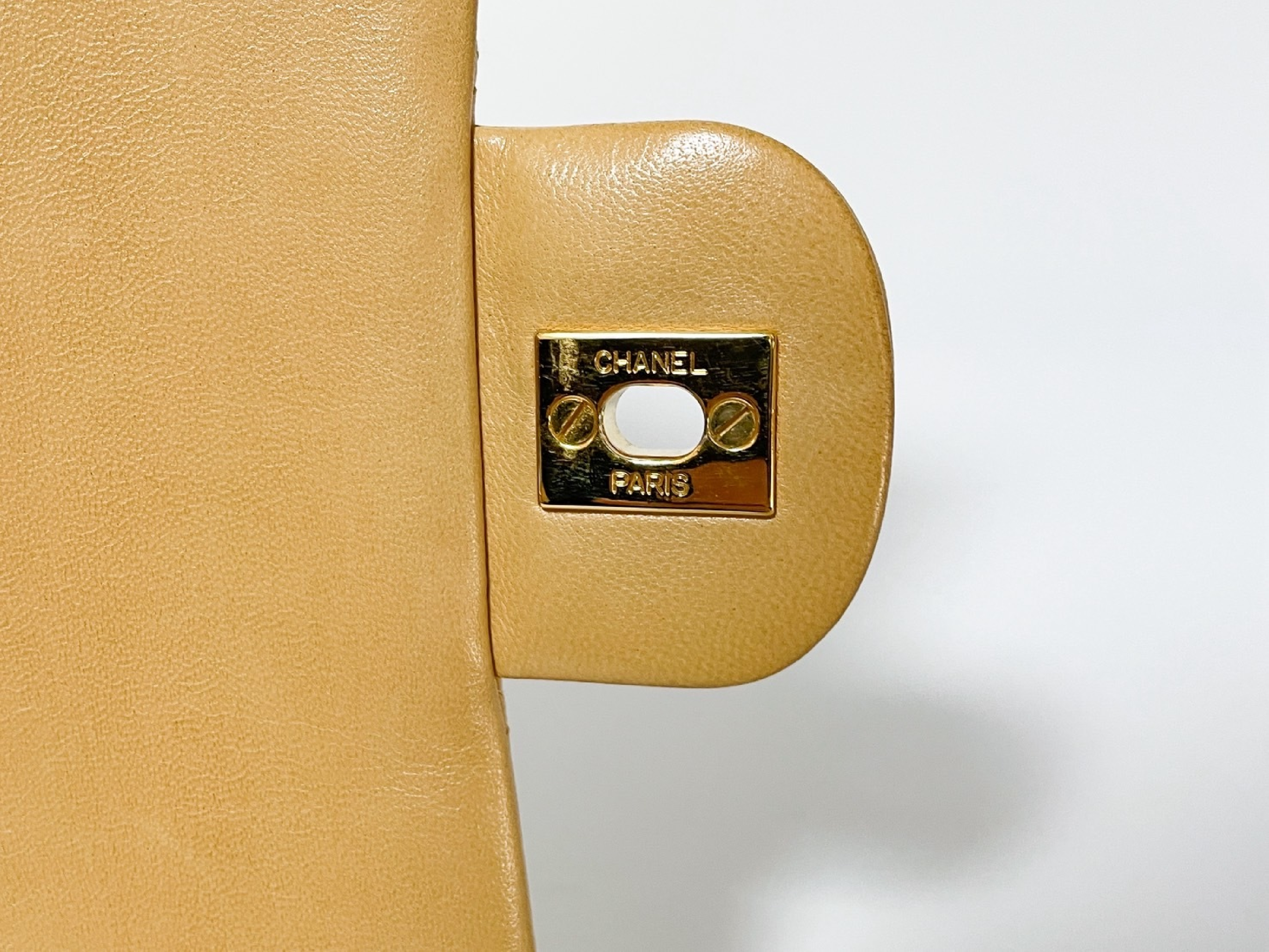 (C_0035)CHANEL Wフラップ マトラッセ ベージュ ラムスキン シールあり ショルダーバッグ