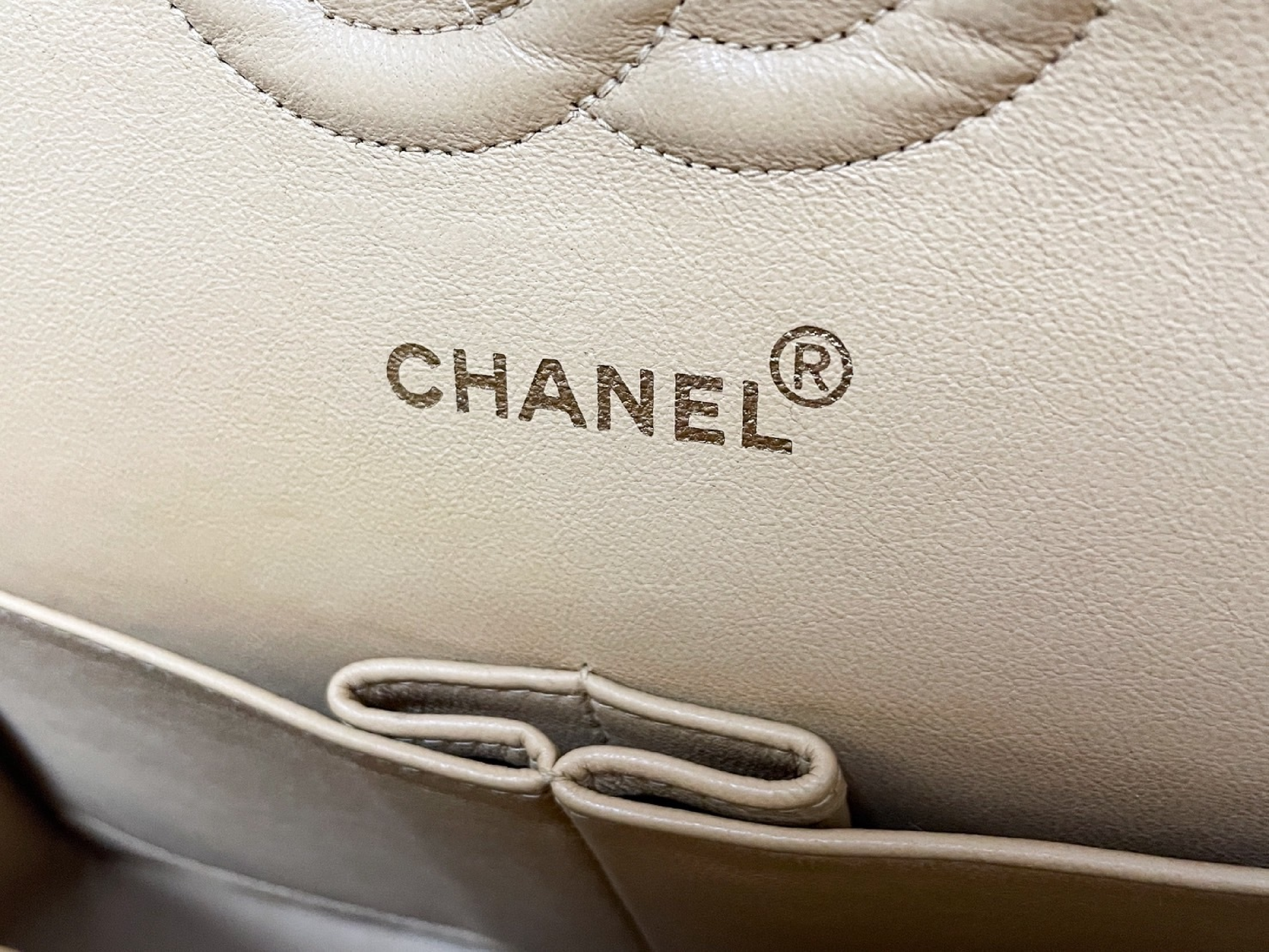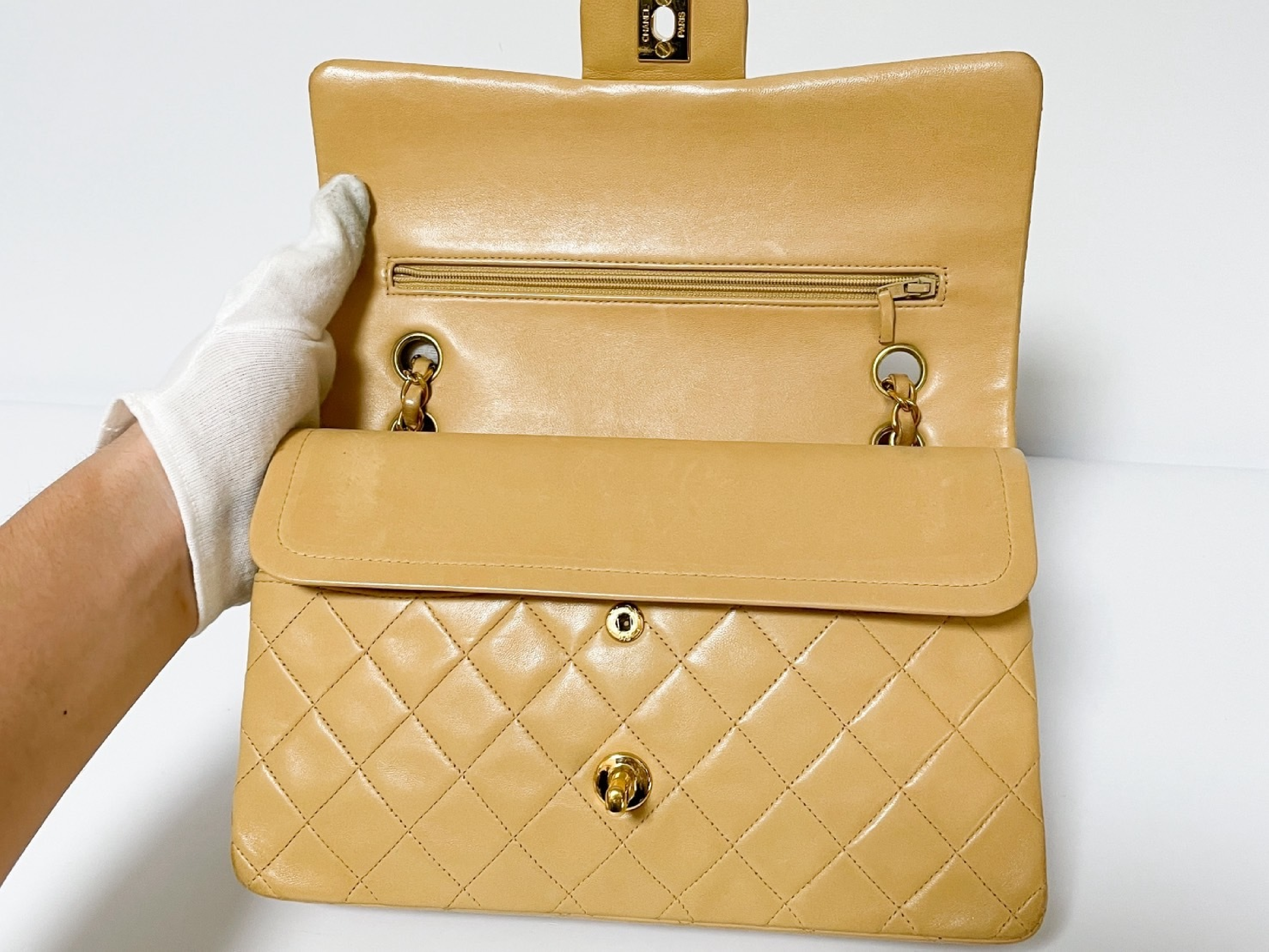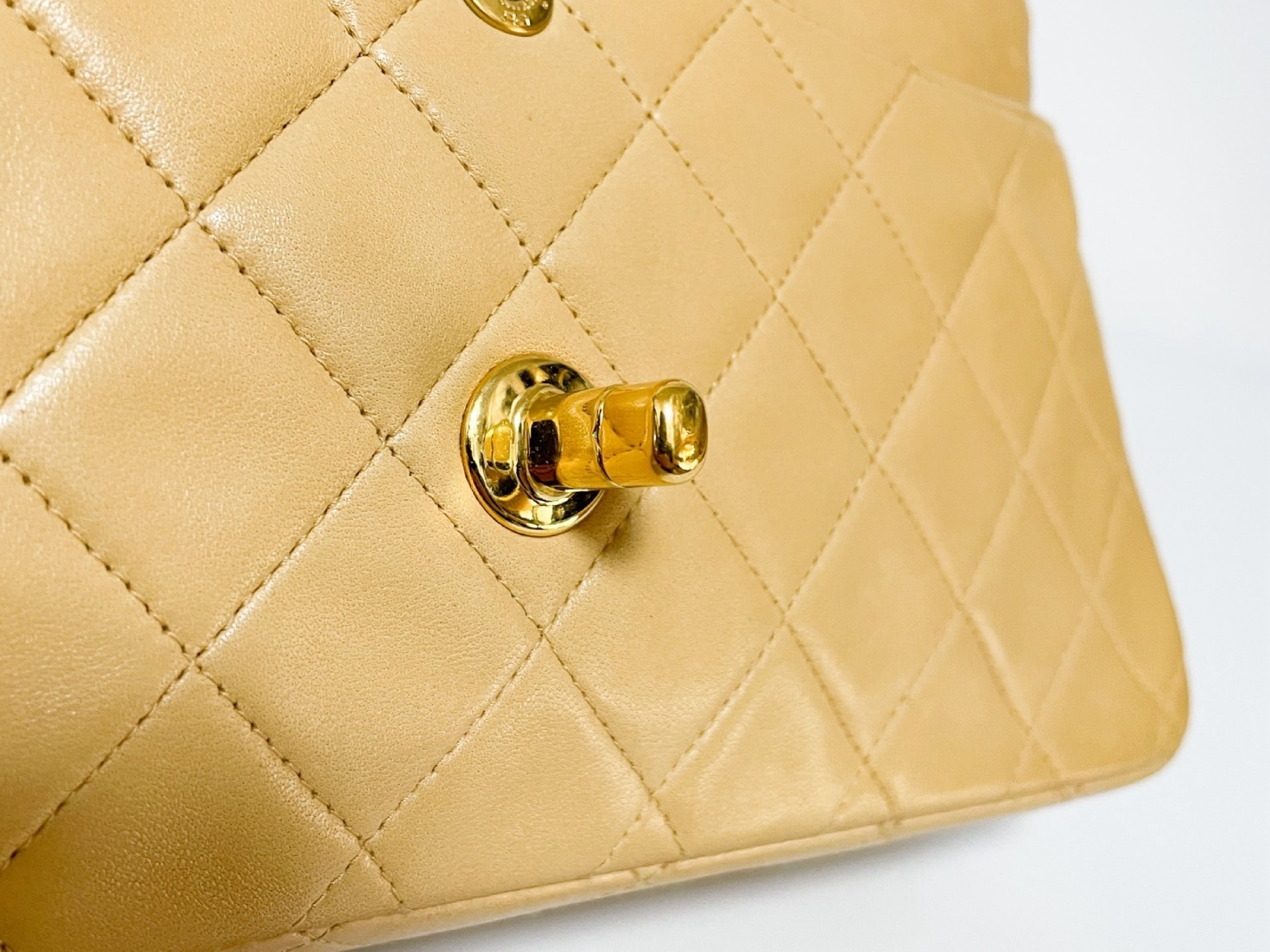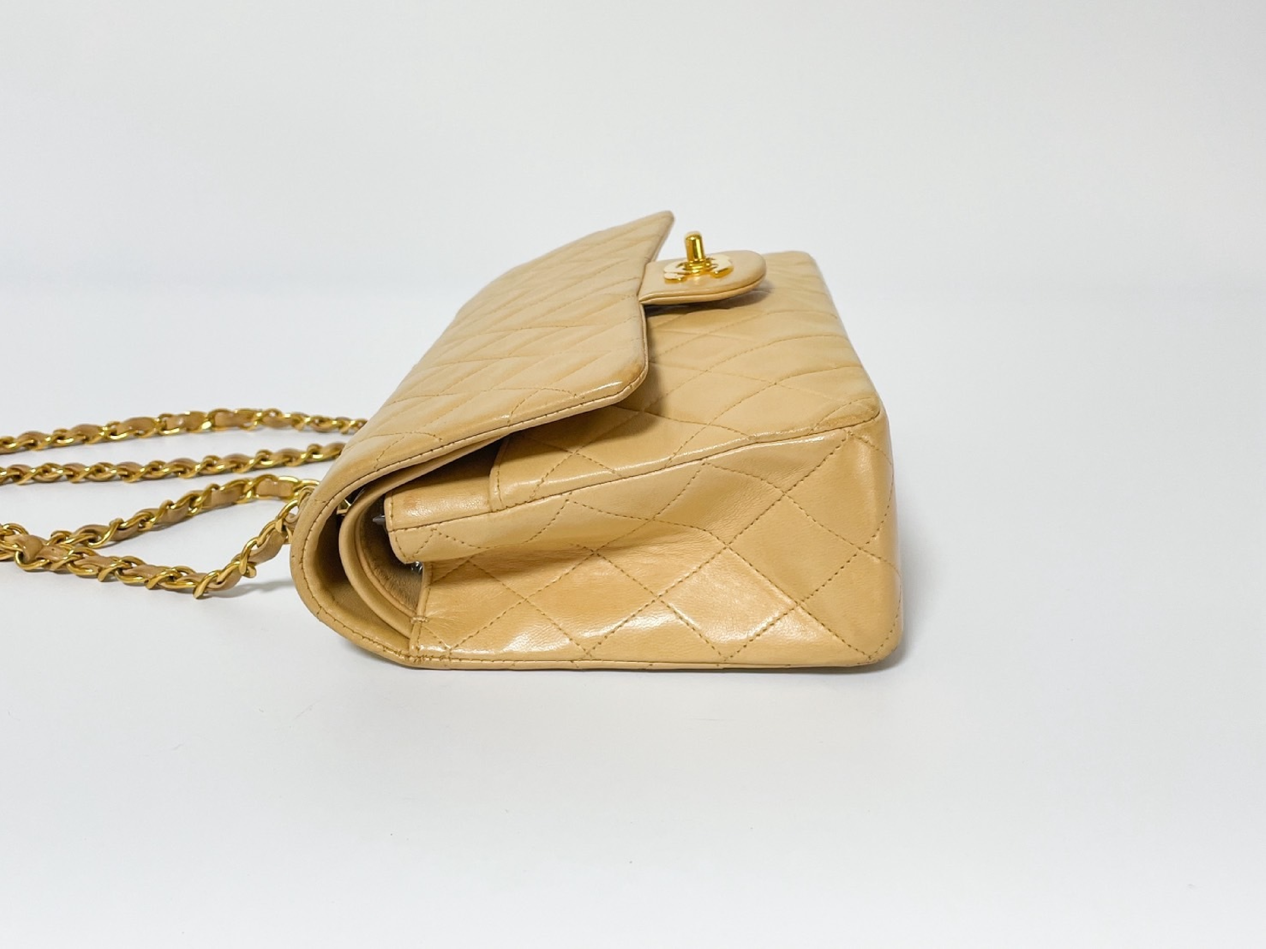 (C_0035)CHANEL Wフラップ マトラッセ ベージュ ラムスキン シールあり ショルダーバッグ