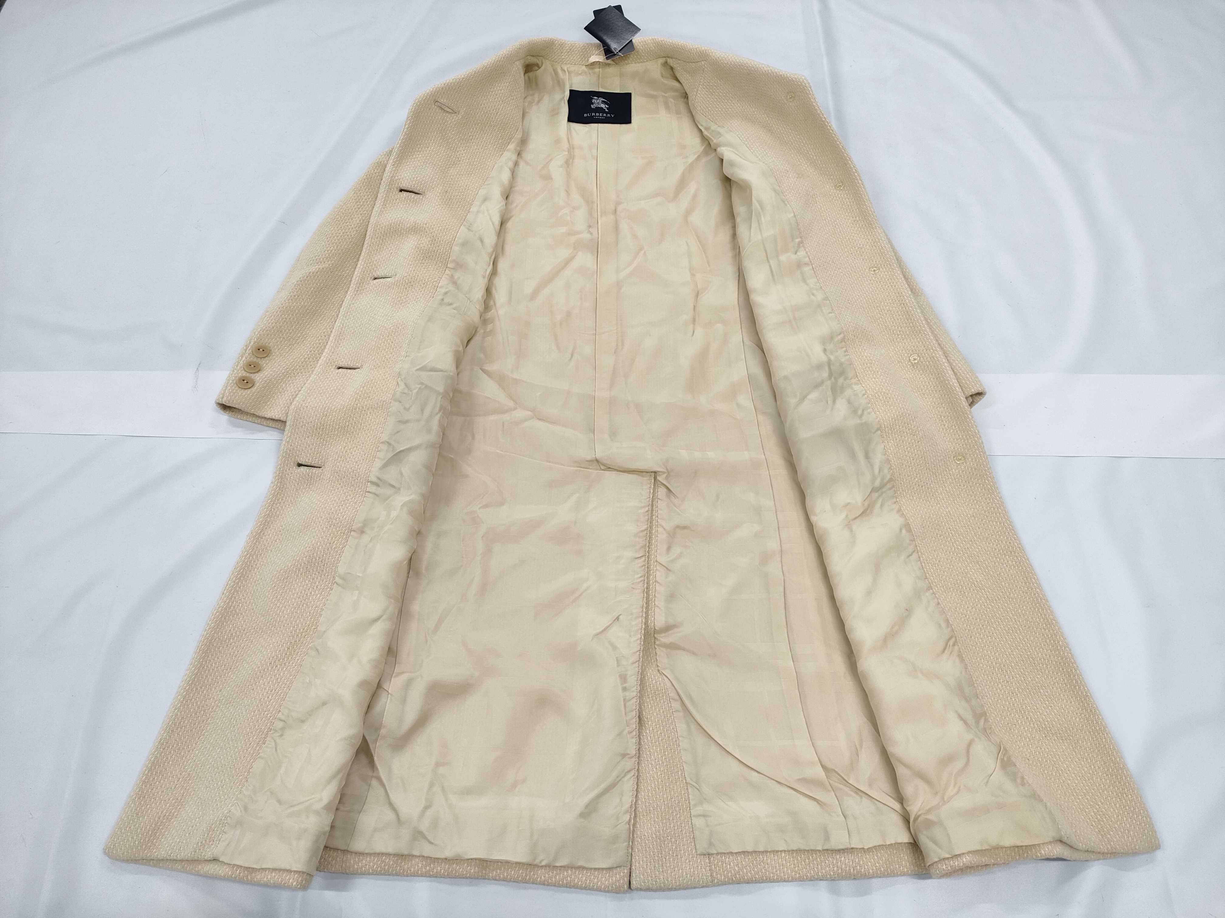 (I_0431)BUREBERRY LONDON バーバリーロンドン 羊毛 カシミヤ ロングコート ベルト チェック ベージュ コート