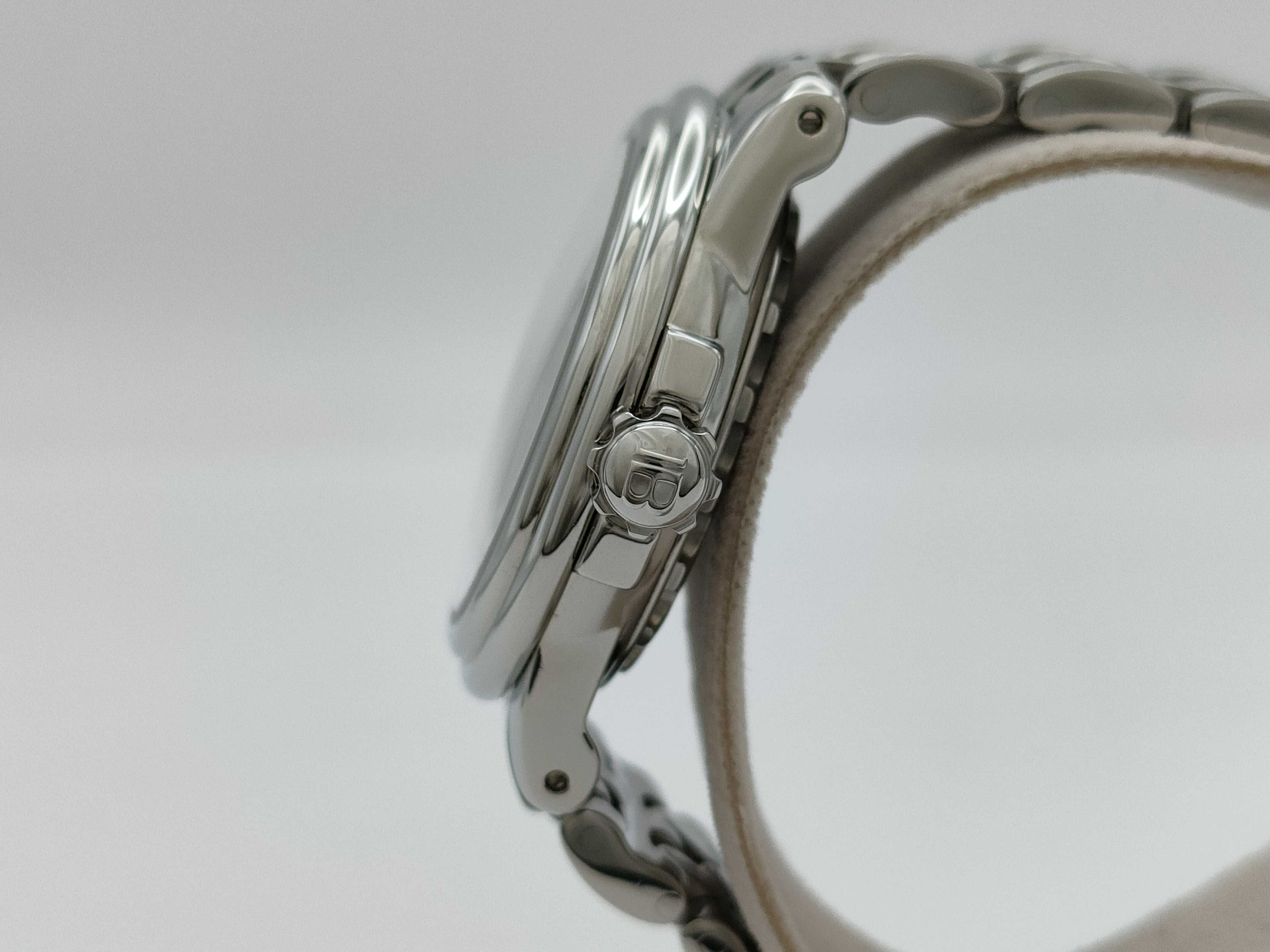 全体傷小 風防コーティング傷小 針・インデックスシミ小 ベゼル・ラグ打痕傷小 裏蓋凹み傷中 コマ3 ギャラなし 箱内部劣化中・粉吹きあり【付属品