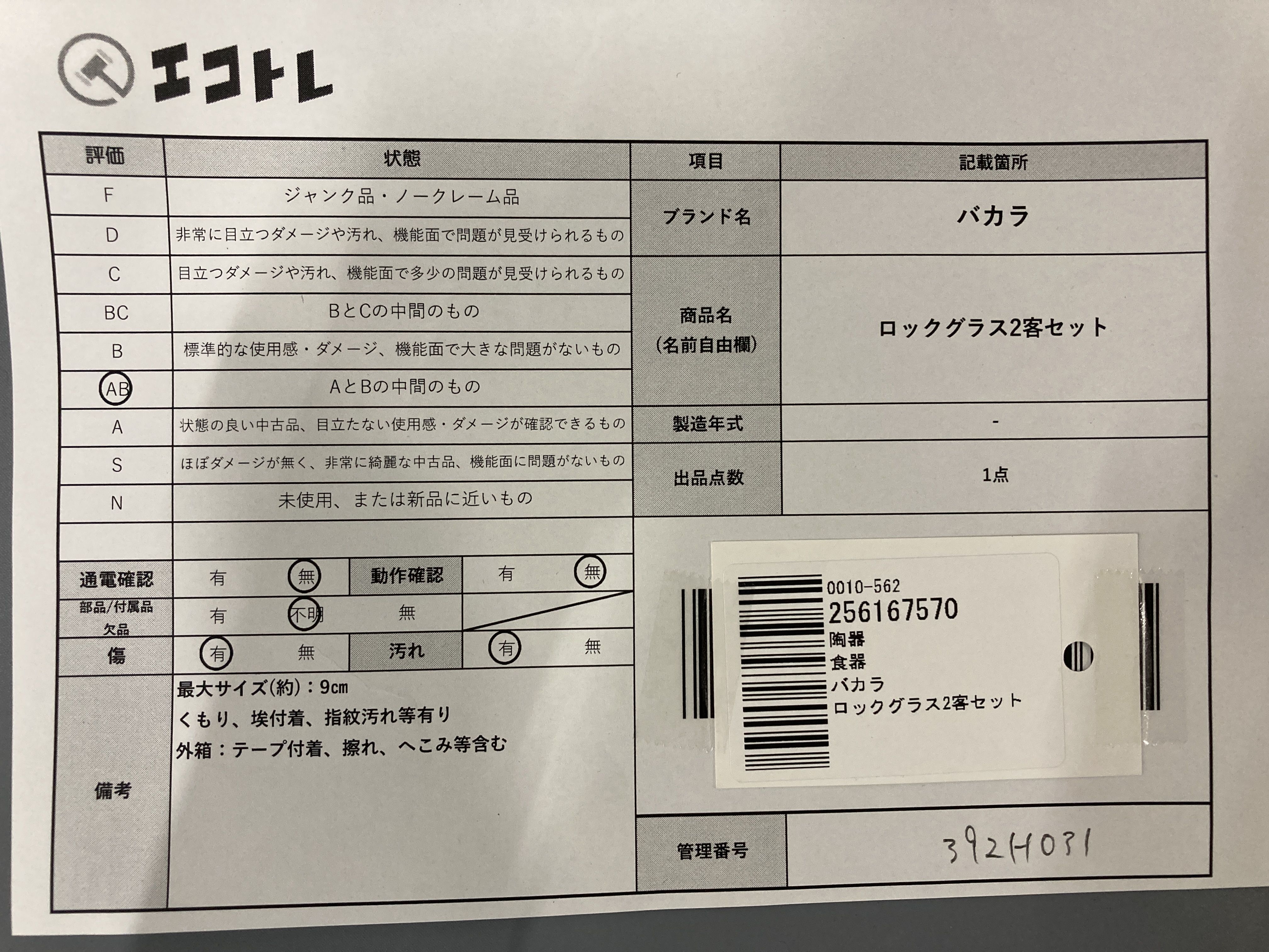 商品内容によって、JITBOXなどでの発送となる可能性がございます事ご理解下さい。年式などの商品情報詳細は写真にてご確認願います。※ご入札の際はご利用規約をよくお読みになってからのご参加お願いします。","タイプライン":"","カテゴリ":"陶器","形状コード":"グラス","付属品コード":"","シリアル・シール・型番":""
