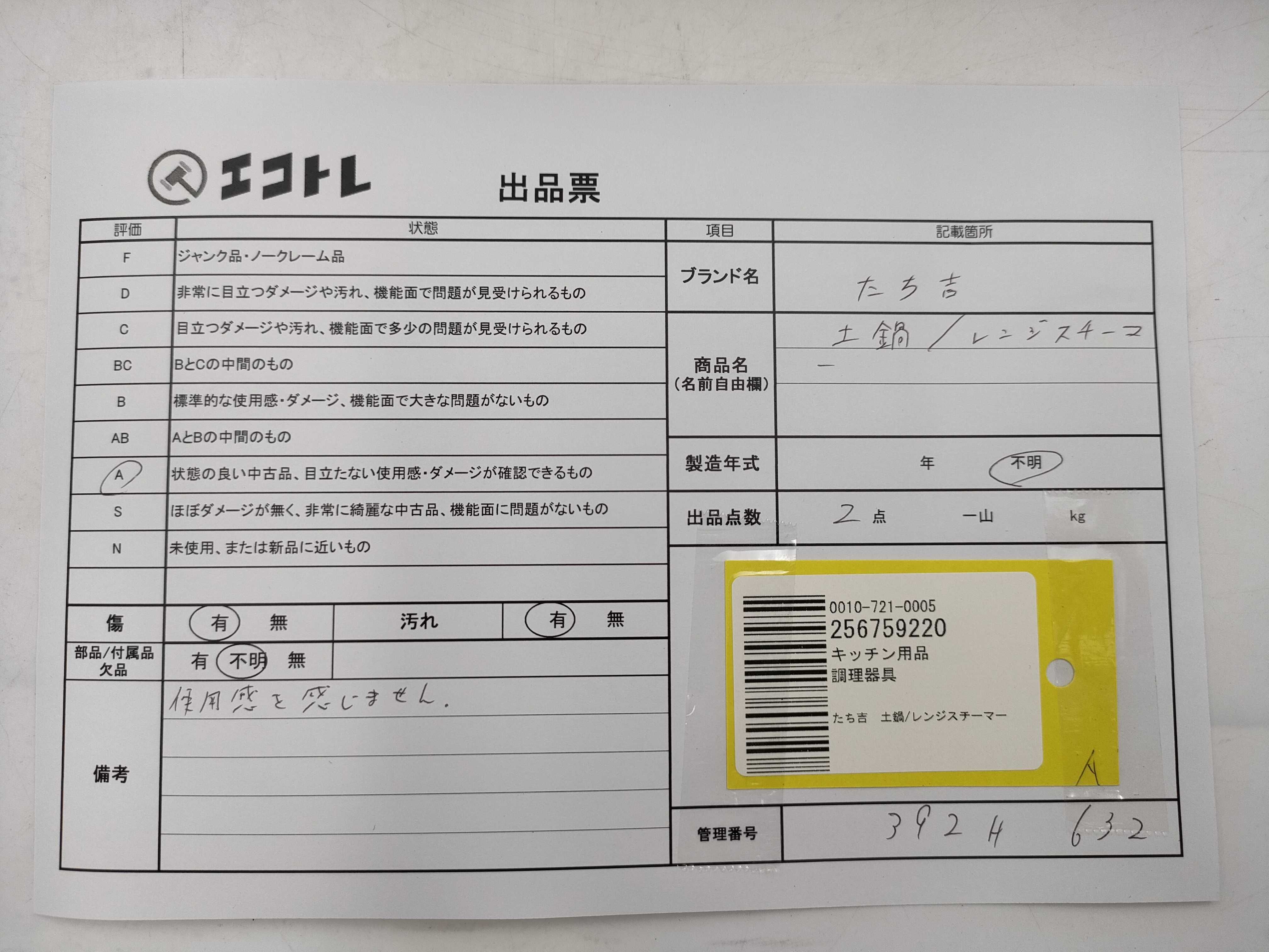 商品内容によって、JITBOXなどでの発送となる可能性がございます事ご理解下さい。年式などの商品情報詳細は写真にてご確認願います。※ご入札の際はご利用規約をよくお読みになってからのご参加お願いします。","タイプライン":"","カテゴリ":"陶器","形状コード":"鍋","付属品コード":"","シリアル・シール・型番":""