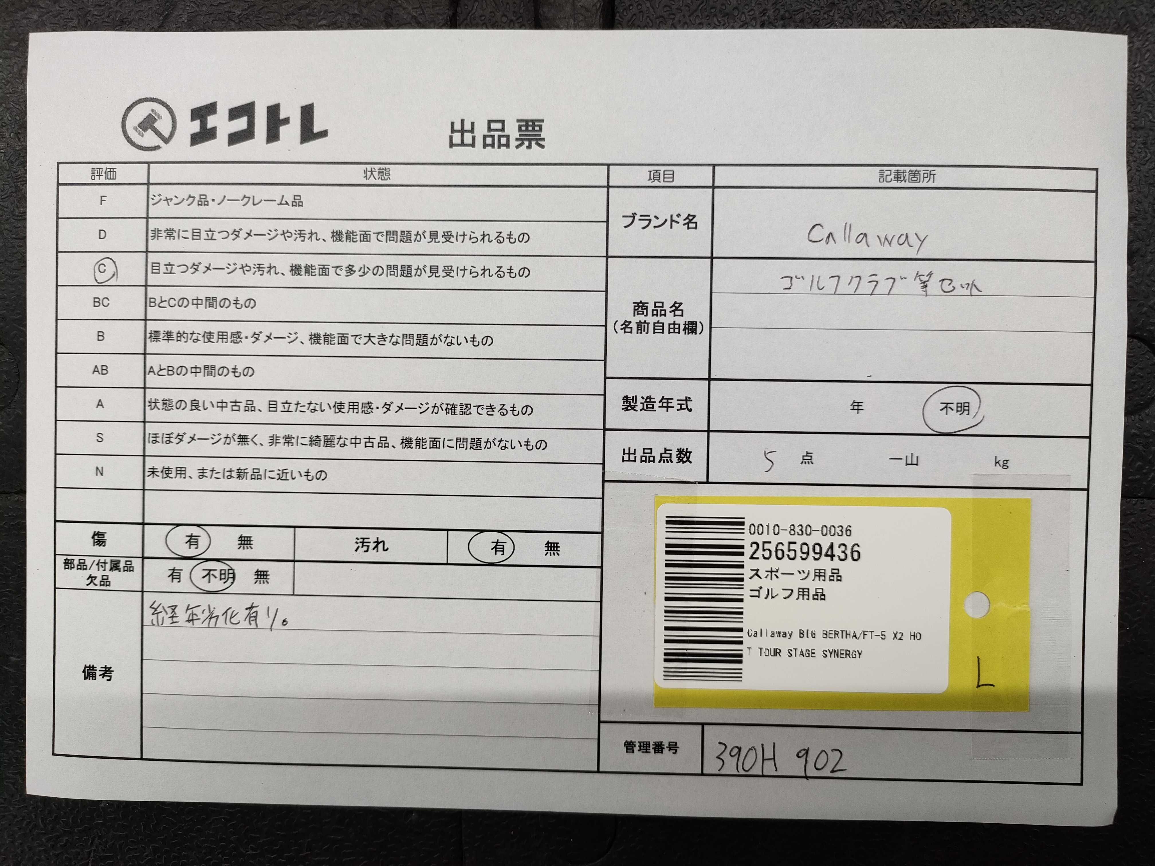 商品内容によって、JITBOXなどでの発送となる可能性がございます事ご理解下さい。年式などの商品情報詳細は写真にてご確認願います。※ご入札の際はご利用規約をよくお読みになってからのご参加お願いします。","タイプライン":"","カテゴリ":"スポーツ","形状コード":"ゴルフ","付属品コード":"","シリアル・シール・型番":""