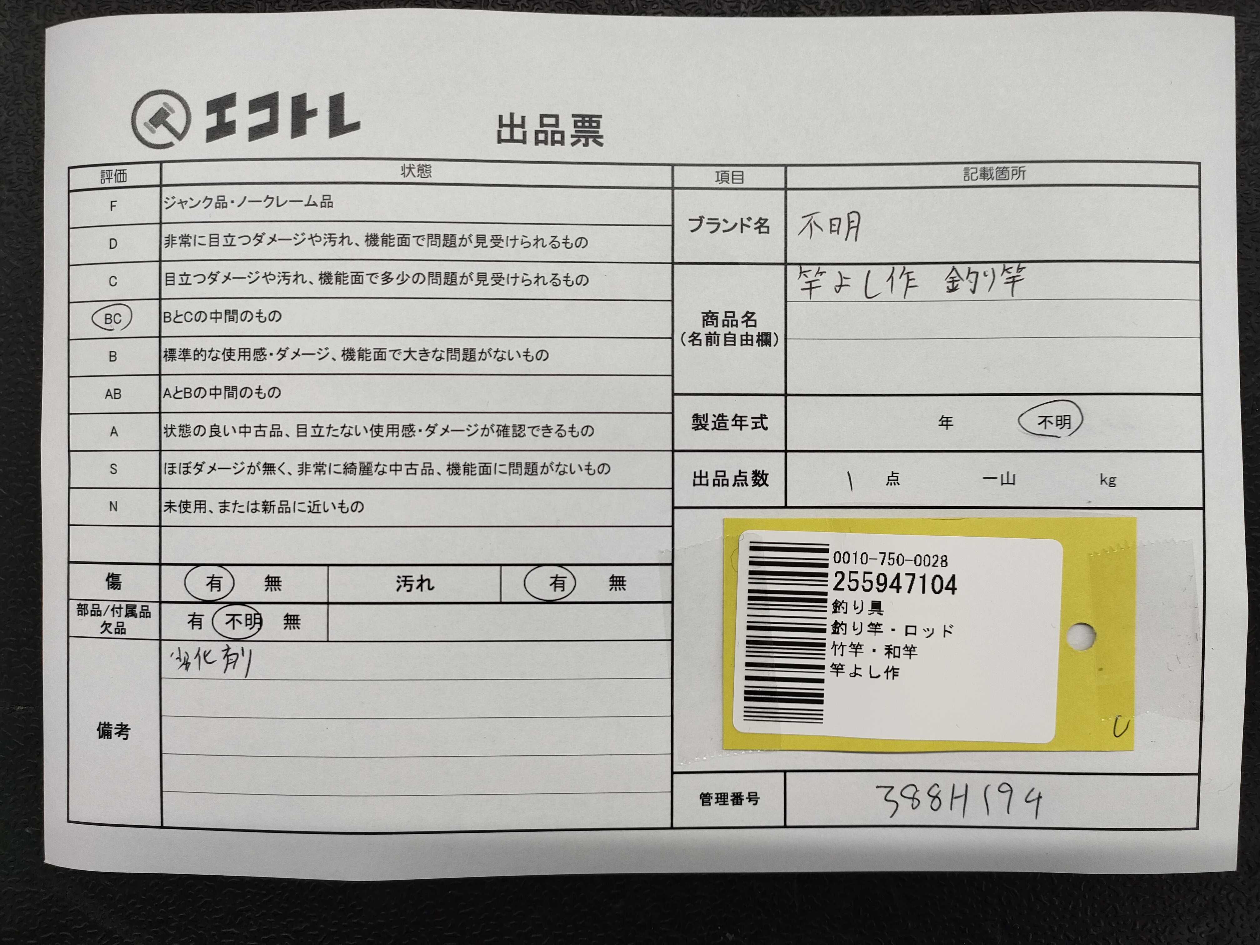 商品内容によって、JITBOXなどでの発送となる可能性がございます事ご理解下さい。年式などの商品情報詳細は写真にてご確認願います。※ご入札の際はご利用規約をよくお読みになってからのご参加お願いします。","タイプライン":"","カテゴリ":"スポーツ","形状コード":"フィッシング","付属品コード":"","シリアル・シール・型番":""