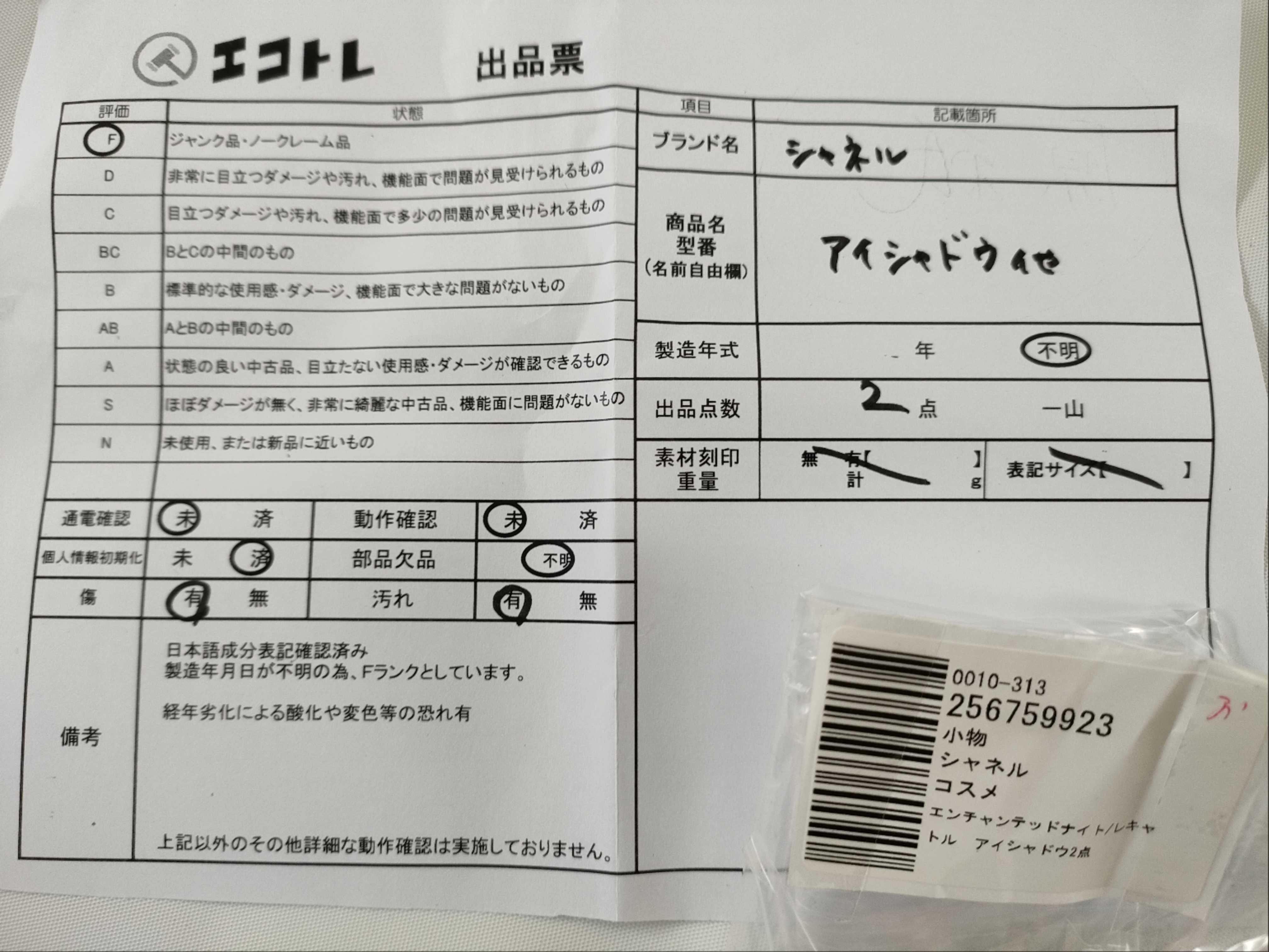 商品内容によって、JITBOXなどでの発送となる可能性がございます事ご理解下さい。年式などの商品情報詳細は写真にてご確認願います。※ご入札の際はご利用規約をよくお読みになってからのご参加お願いします。","タイプライン":"","カテゴリ":"消耗品","形状コード":"コスメ","付属品コード":"","シリアル・シール・型番":""