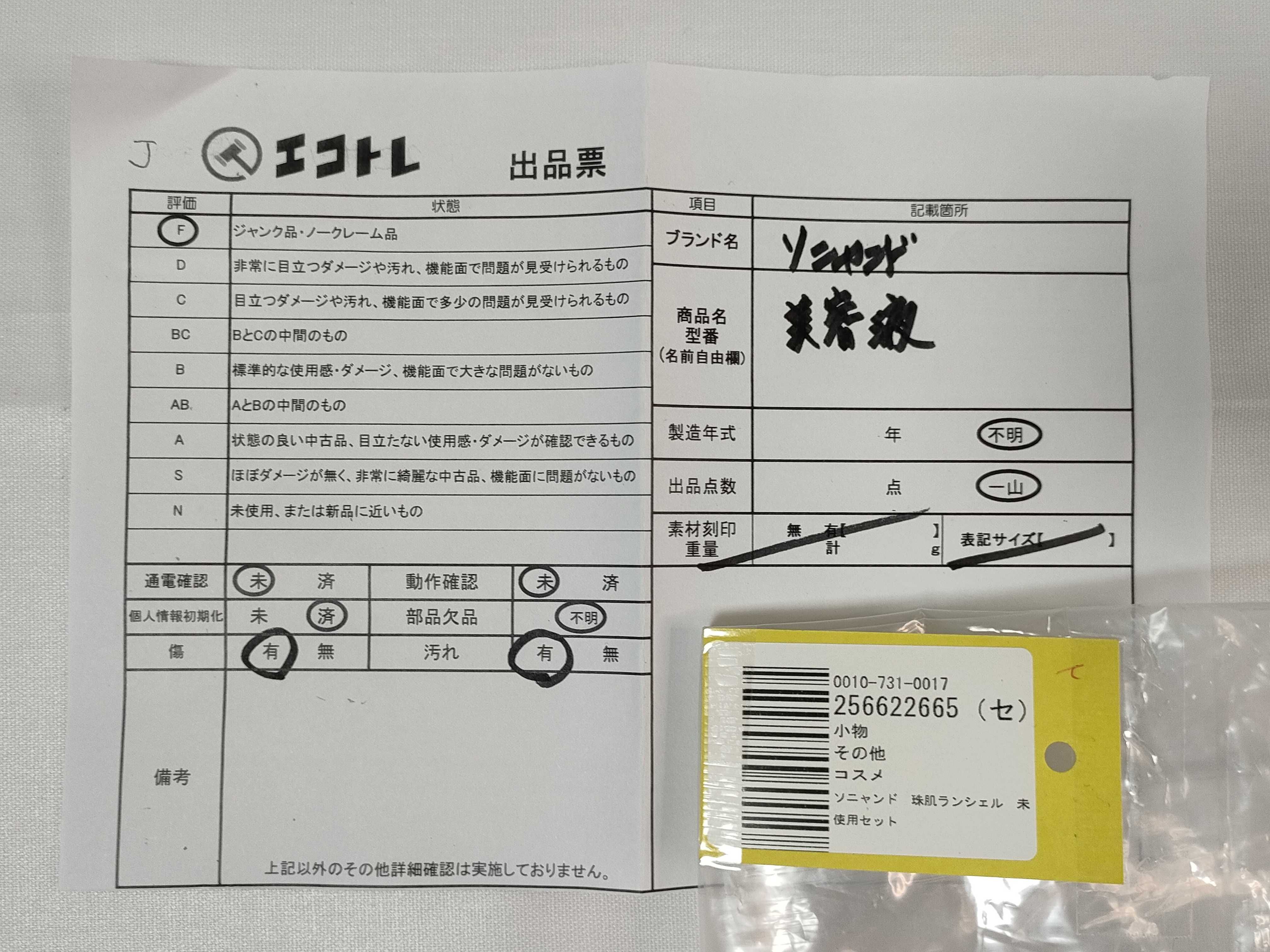 商品内容によって、JITBOXなどでの発送となる可能性がございます事ご理解下さい。年式などの商品情報詳細は写真にてご確認願います。※ご入札の際はご利用規約をよくお読みになってからのご参加お願いします。","タイプライン":"","カテゴリ":"消耗品","形状コード":"コスメ","付属品コード":"","シリアル・シール・型番":""