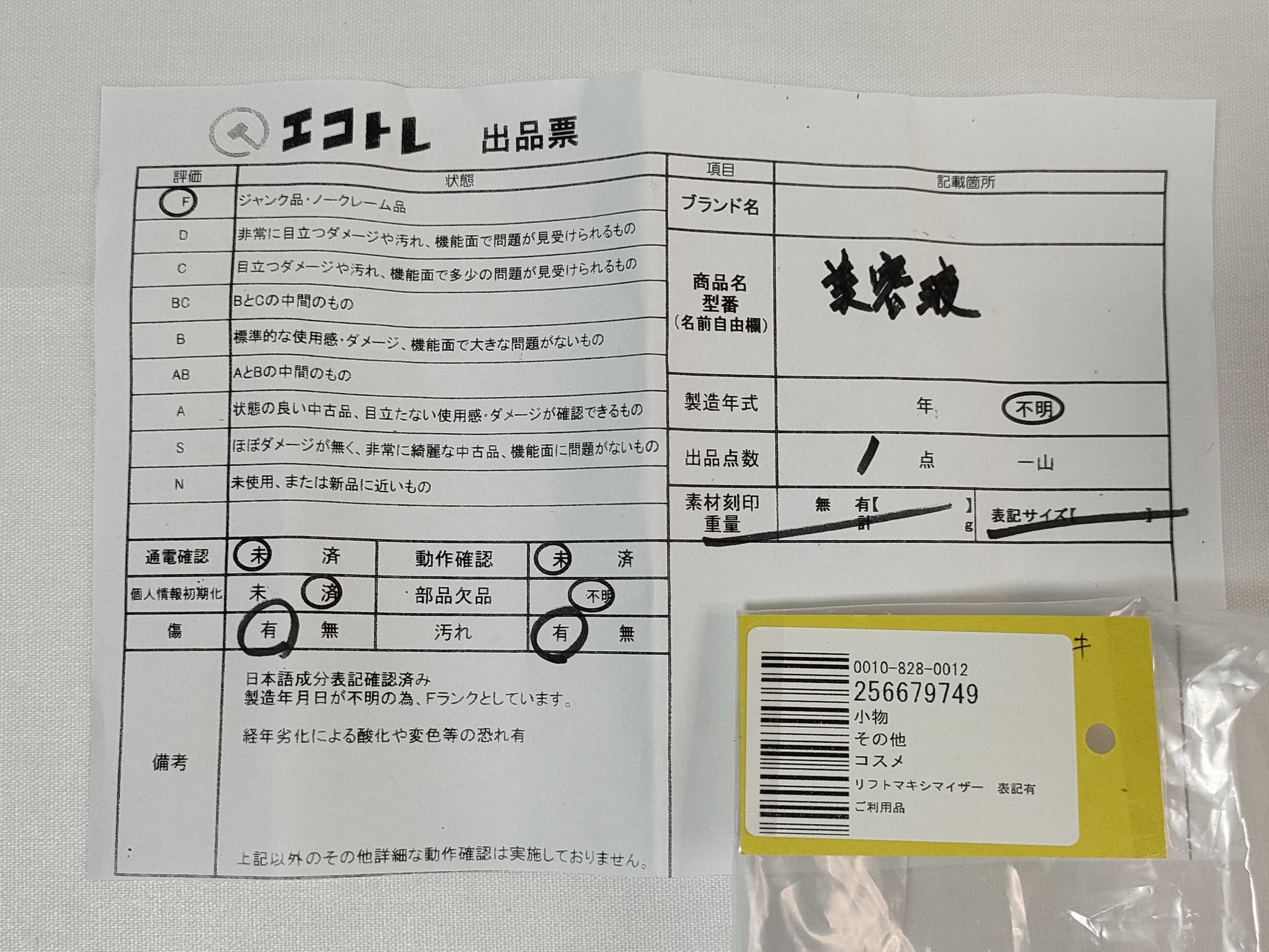 商品内容によって、JITBOXなどでの発送となる可能性がございます事ご理解下さい。年式などの商品情報詳細は写真にてご確認願います。※ご入札の際はご利用規約をよくお読みになってからのご参加お願いします。","タイプライン":"","カテゴリ":"消耗品","形状コード":"コスメ","付属品コード":"","シリアル・シール・型番":""