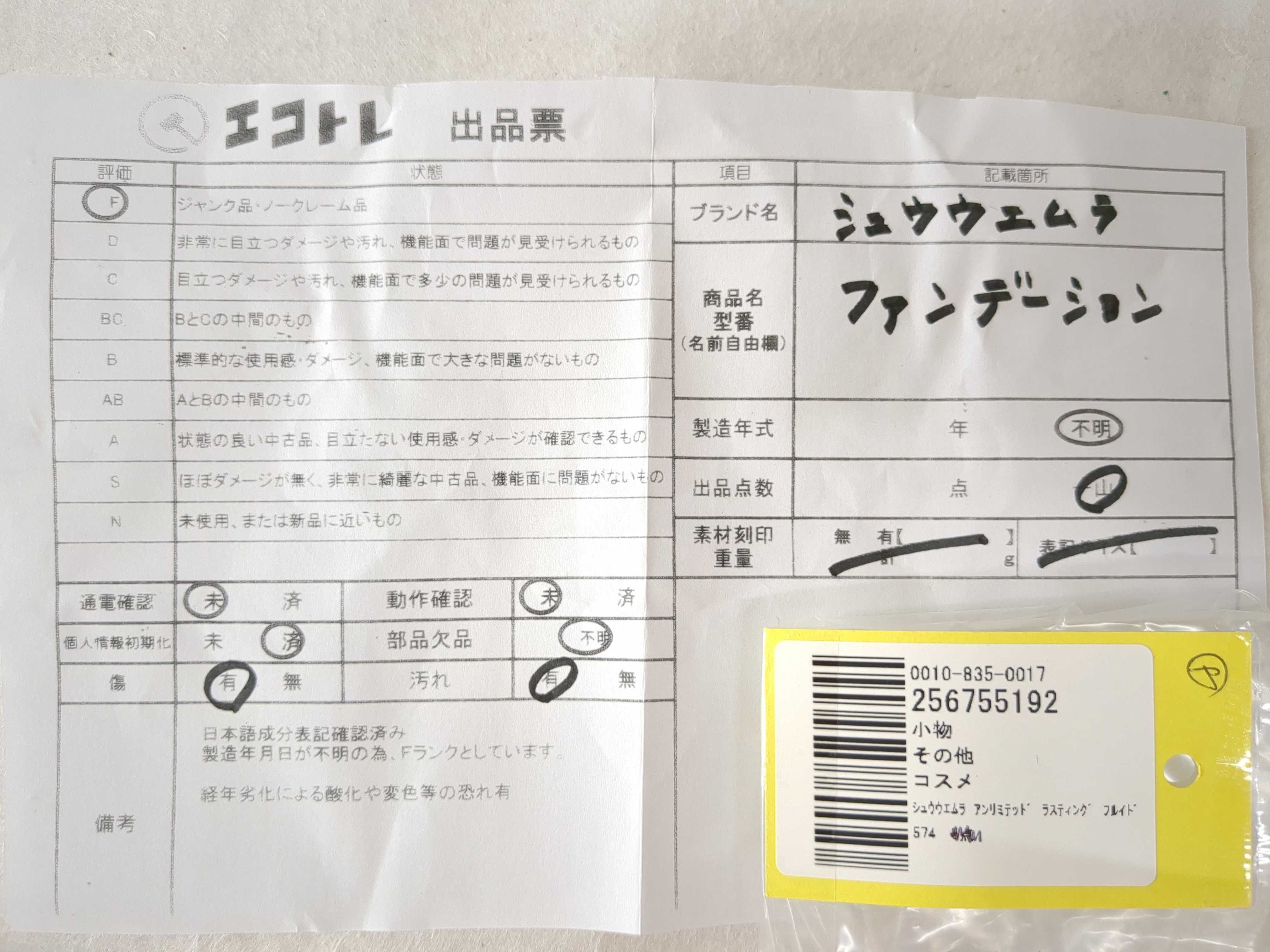 商品内容によって、JITBOXなどでの発送となる可能性がございます事ご理解下さい。年式などの商品情報詳細は写真にてご確認願います。※ご入札の際はご利用規約をよくお読みになってからのご参加お願いします。","タイプライン":"","カテゴリ":"消耗品","形状コード":"コスメ","付属品コード":"","シリアル・シール・型番":""