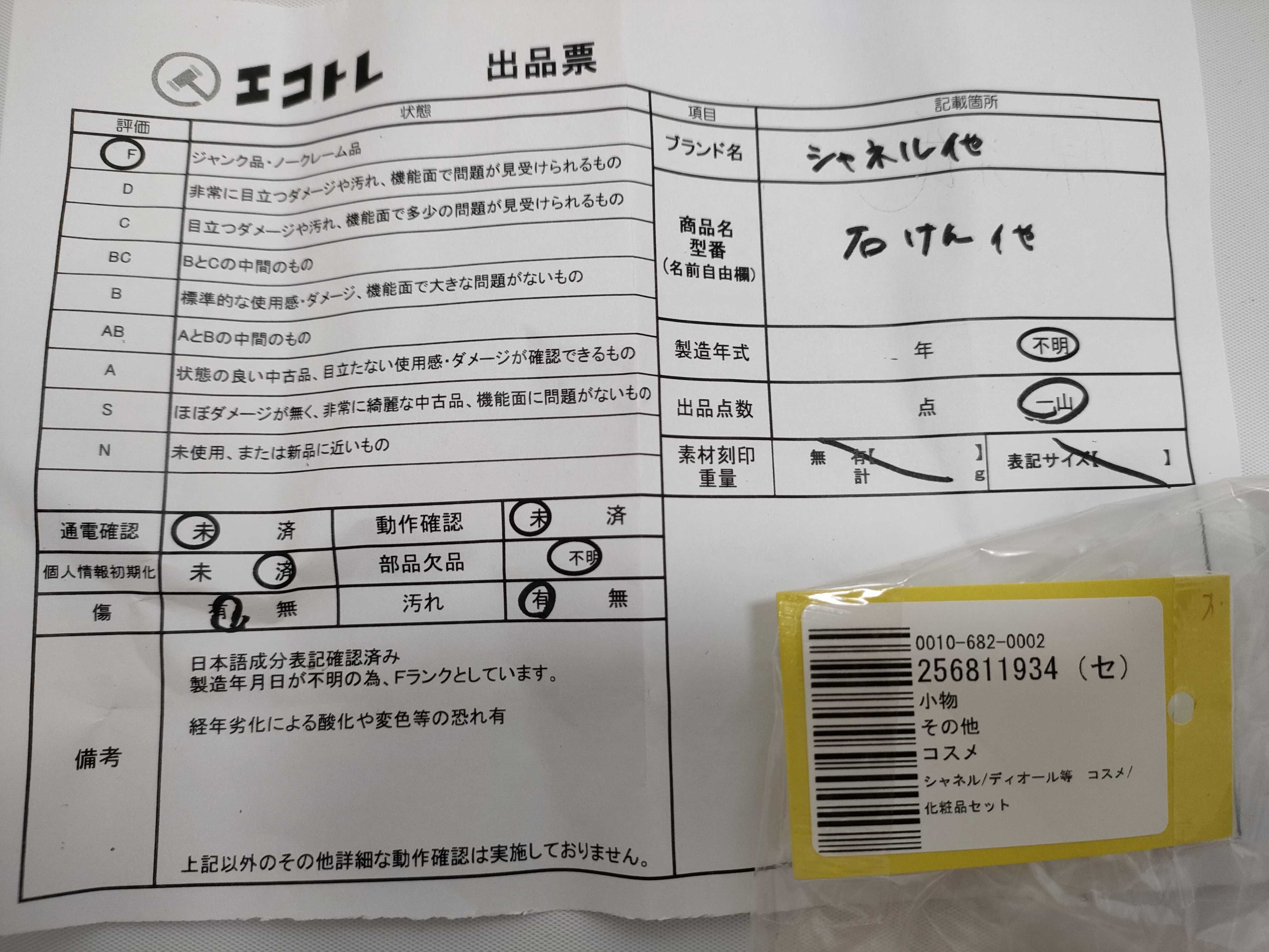 商品内容によって、JITBOXなどでの発送となる可能性がございます事ご理解下さい。年式などの商品情報詳細は写真にてご確認願います。※ご入札の際はご利用規約をよくお読みになってからのご参加お願いします。","タイプライン":"","カテゴリ":"消耗品","形状コード":"コスメ","付属品コード":"","シリアル・シール・型番":""