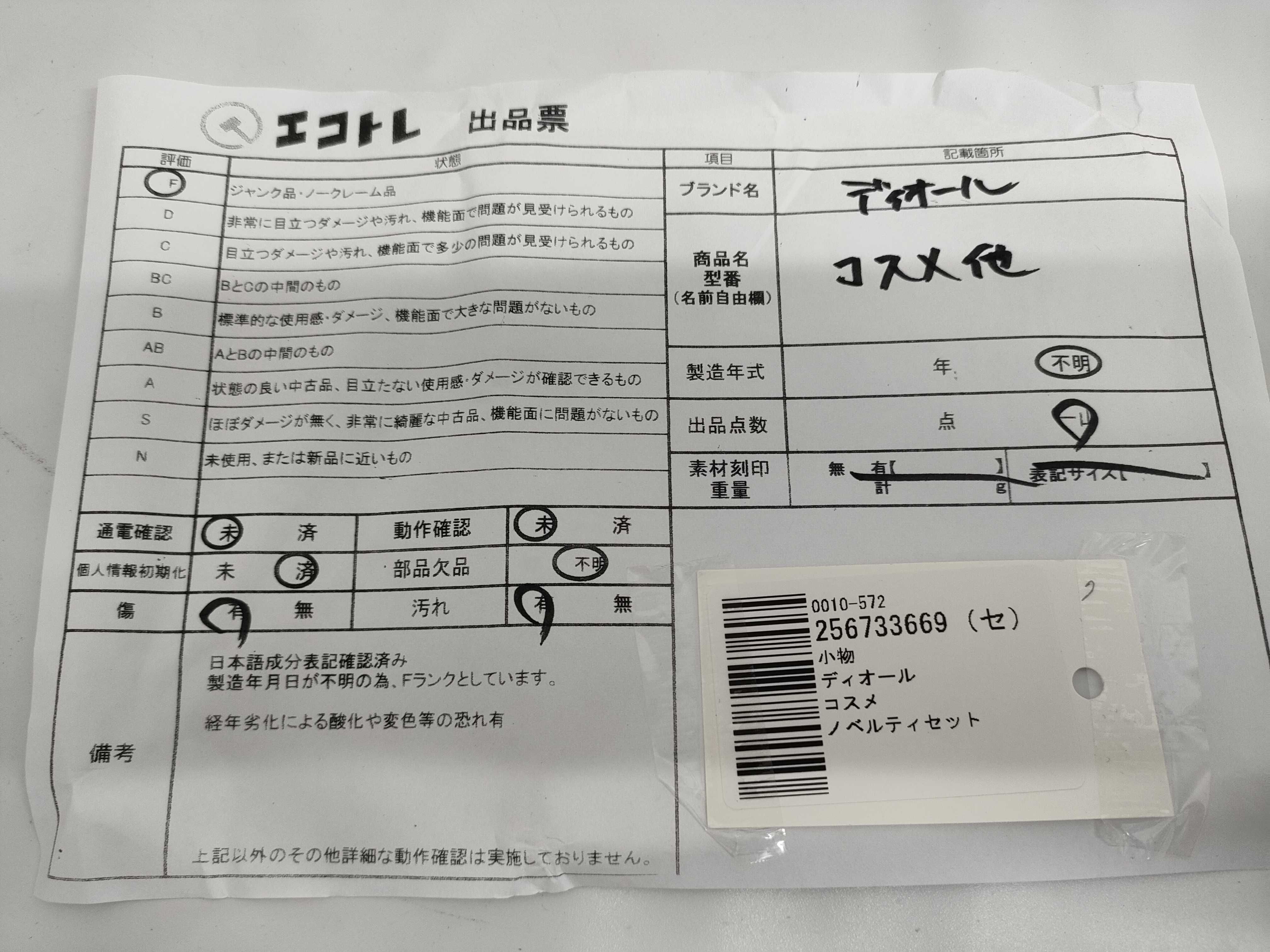 商品内容によって、JITBOXなどでの発送となる可能性がございます事ご理解下さい。年式などの商品情報詳細は写真にてご確認願います。※ご入札の際はご利用規約をよくお読みになってからのご参加お願いします。","タイプライン":"","カテゴリ":"消耗品","形状コード":"コスメ","付属品コード":"","シリアル・シール・型番":""